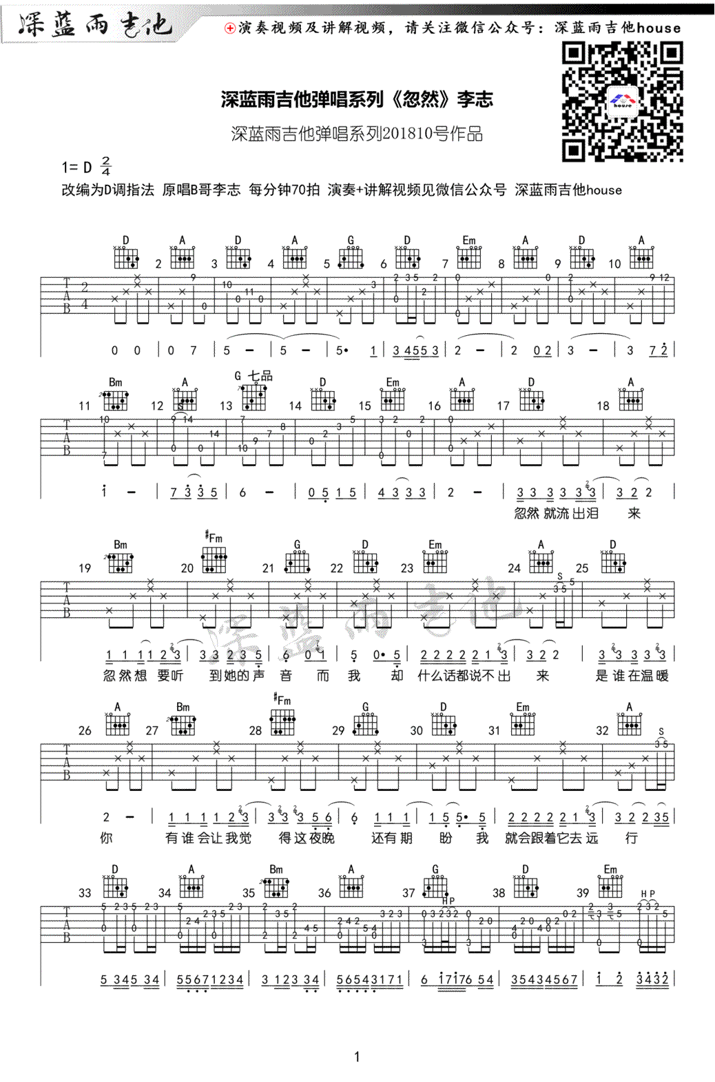 - 和你在一起吉他谱 李志 G调六线谱 吉他教学视频