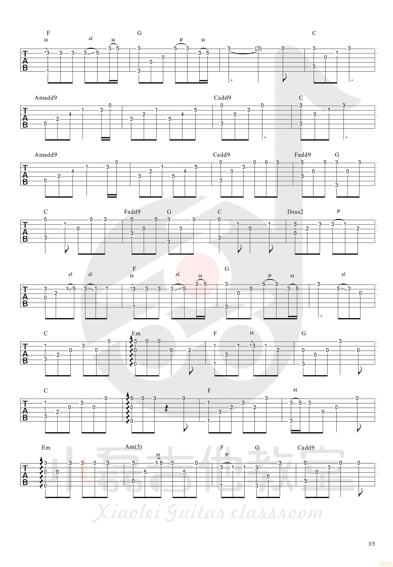 - 慢慢喜欢你吉他指弹谱 莫文蔚 吉他独奏谱 图片谱