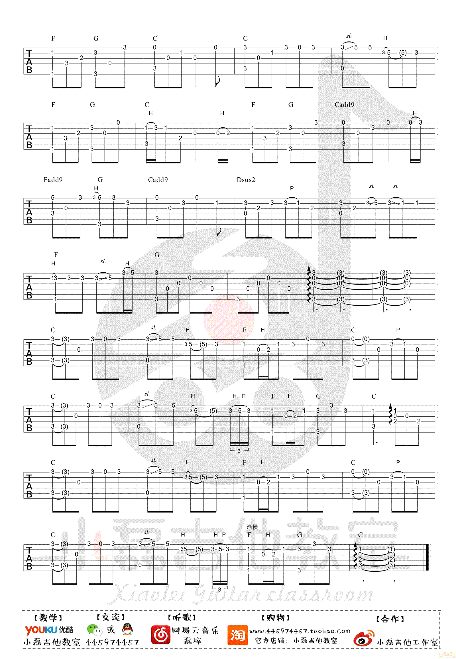 - 等你下课吉他独奏谱 周杰伦 C调指弹版 吉他演奏视频