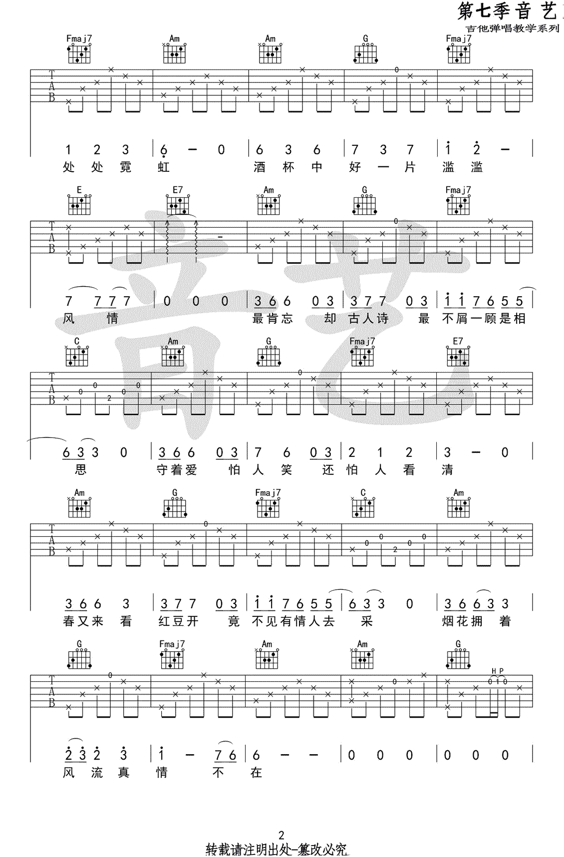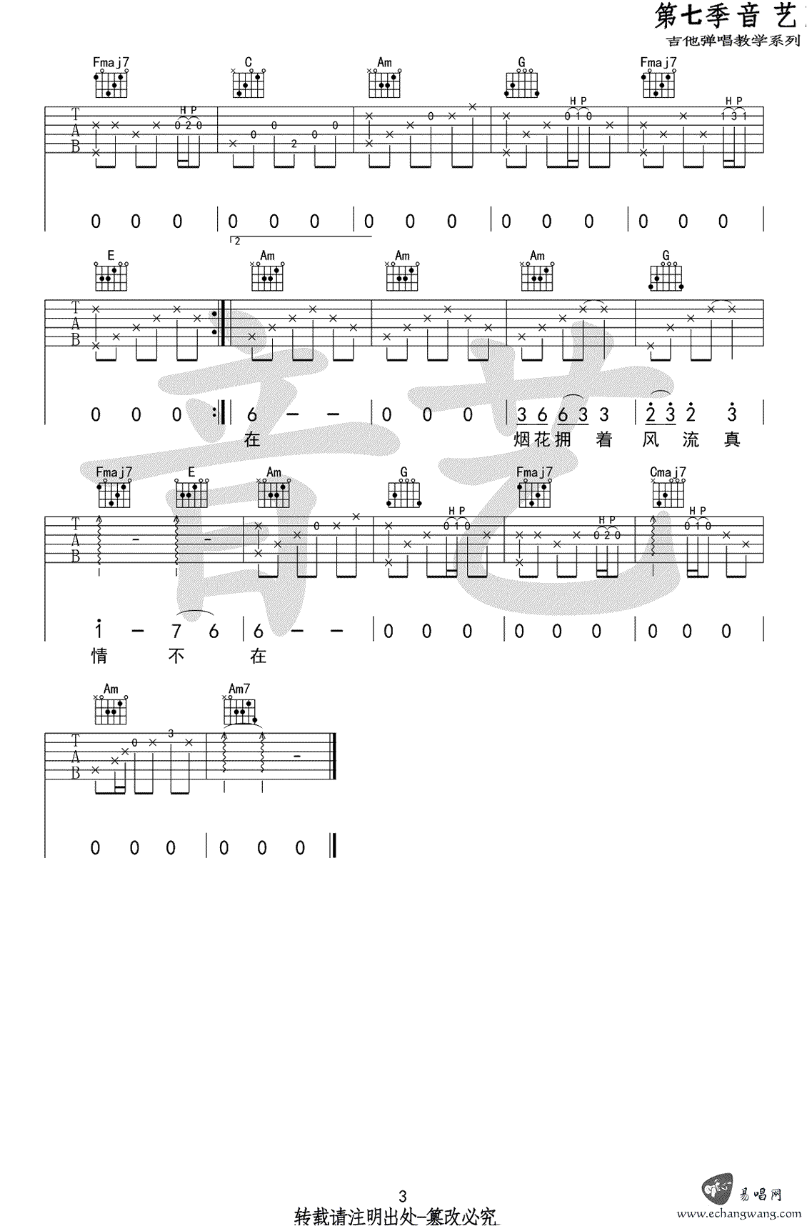 - 春风十里吉他谱 鹿先森乐队 高清弹唱谱 吉他弹唱示范