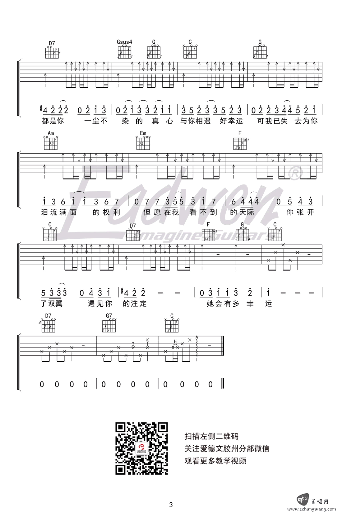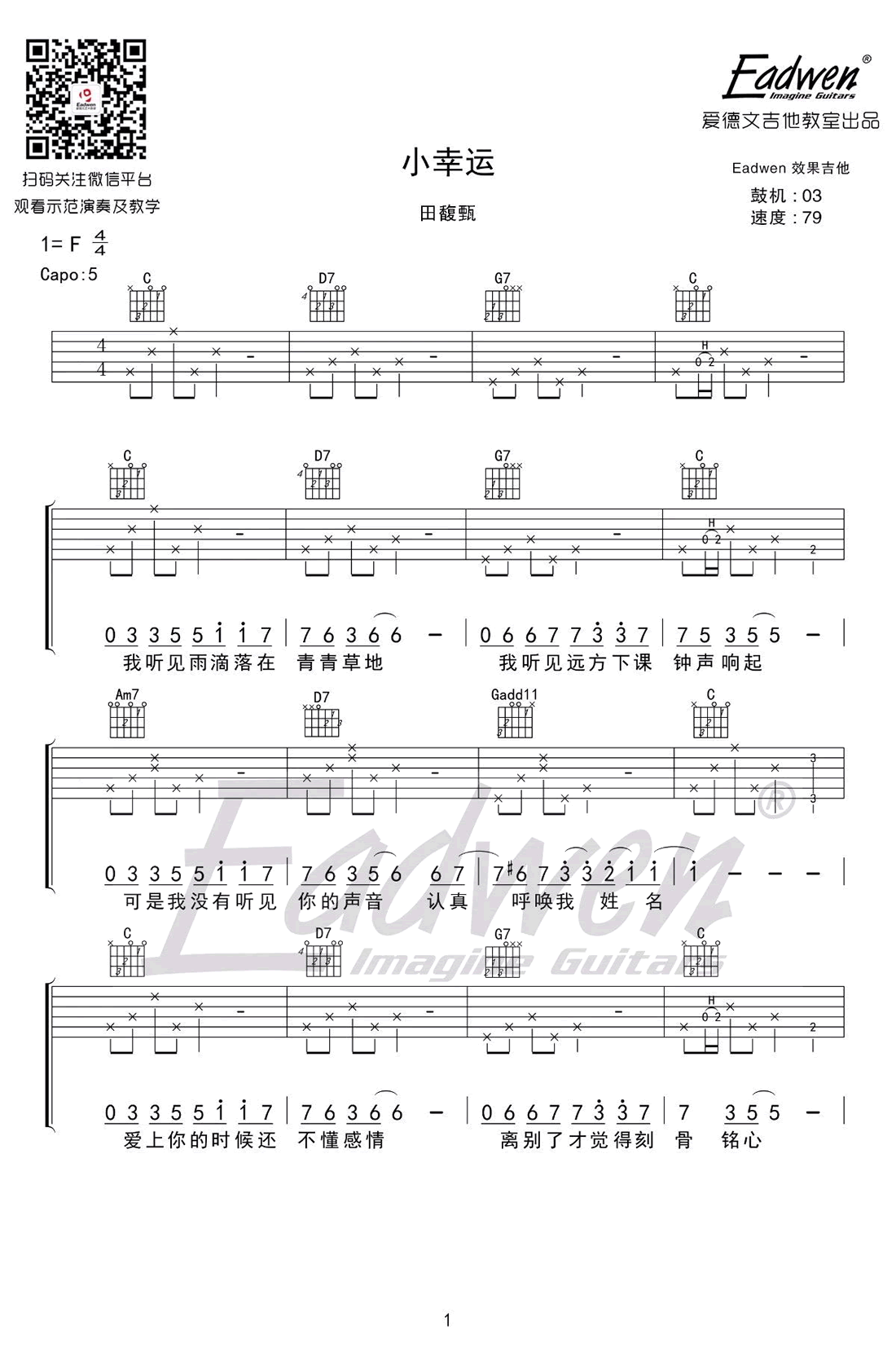 - 小幸运吉他谱_C调原版六线谱_田馥甄吉他谱