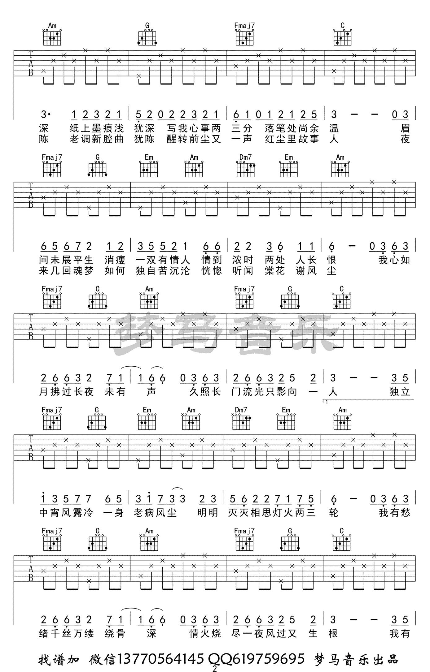 - 红昭愿吉他谱 C调弹唱谱 音阙诗听 吉他弹唱示范
