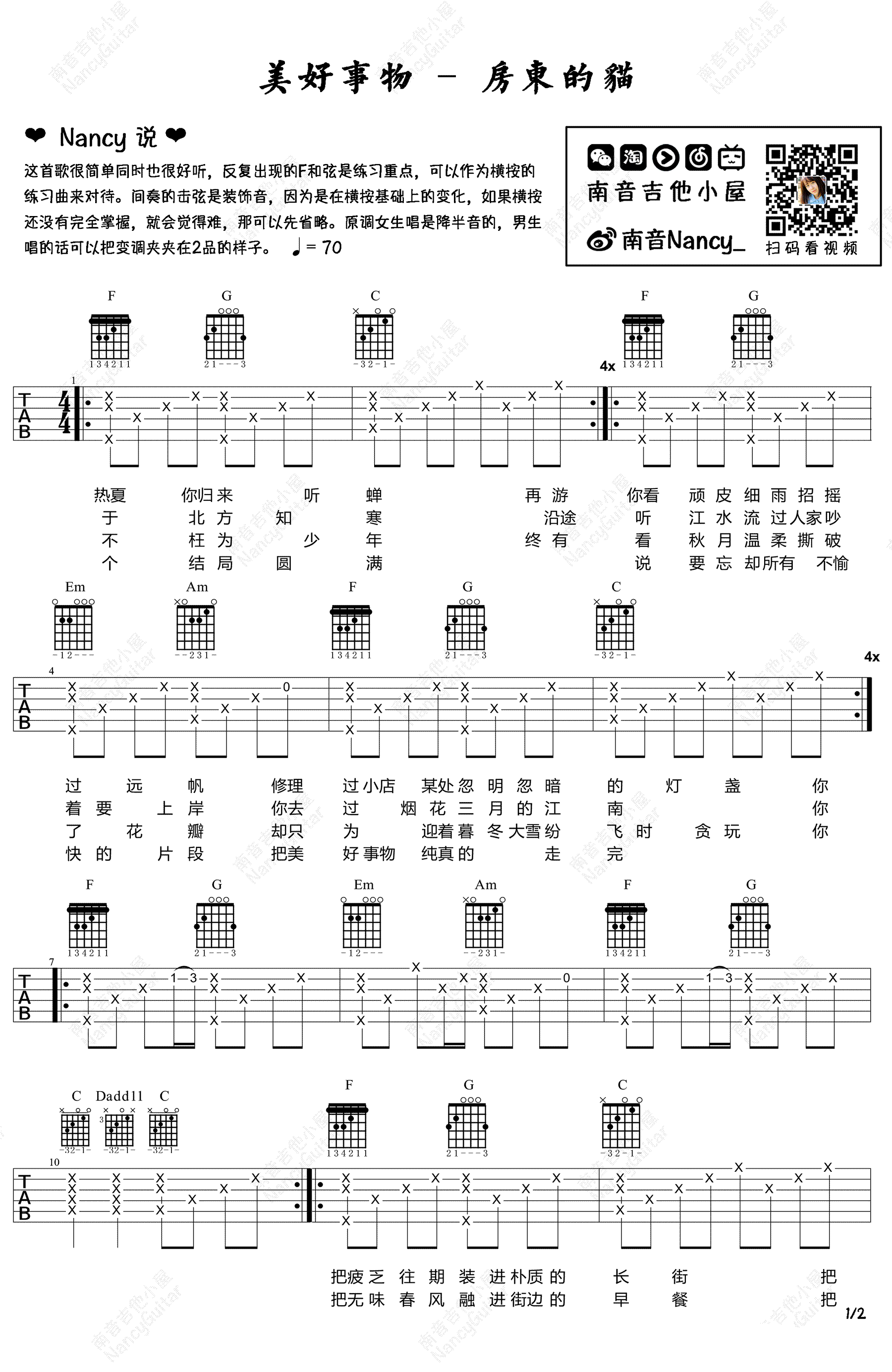 - 胸大的姑娘吉他谱 留声玩具 C调指法 吉他弹唱演示