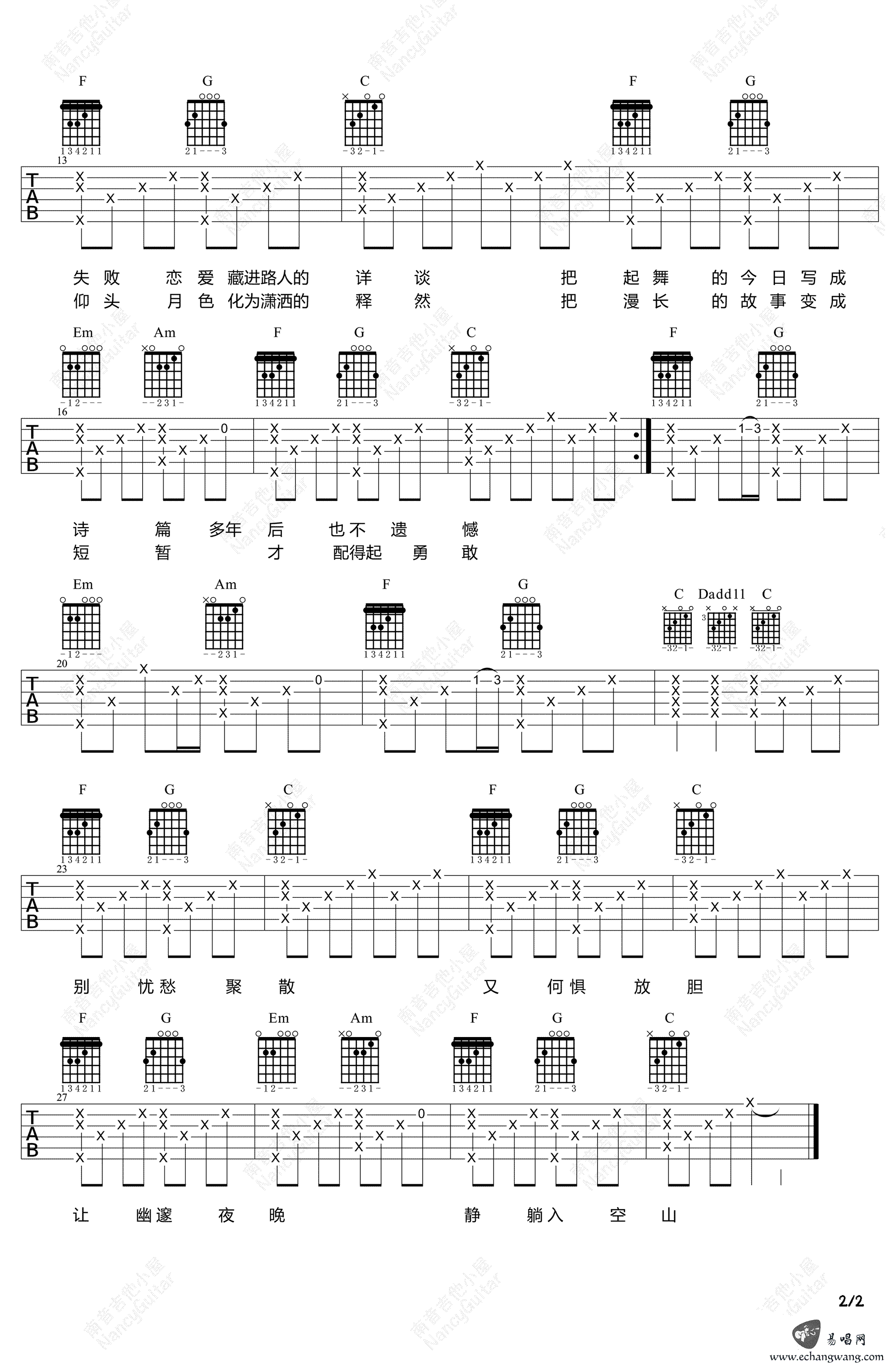 - 春风十里吉他谱 鹿先森乐队 高清弹唱谱 吉他弹唱示范