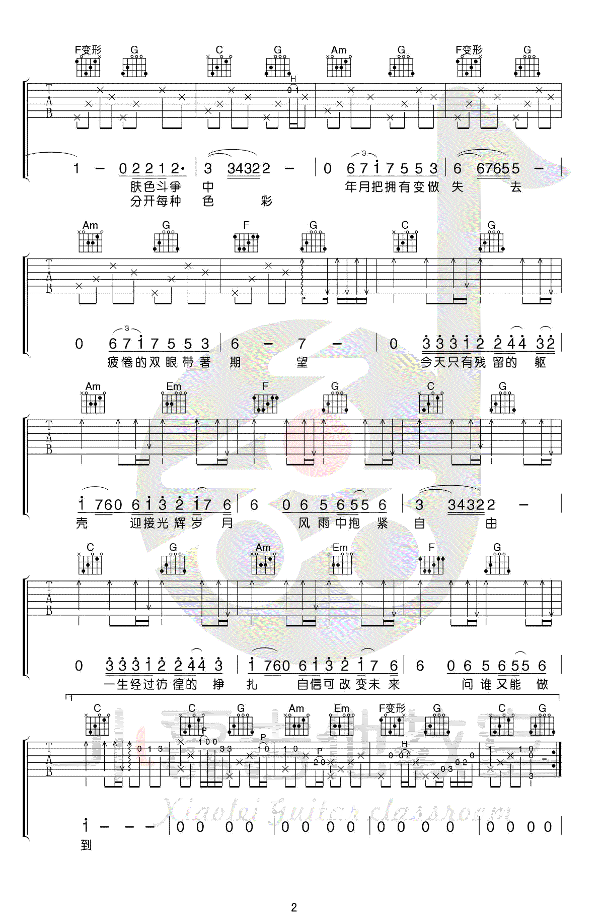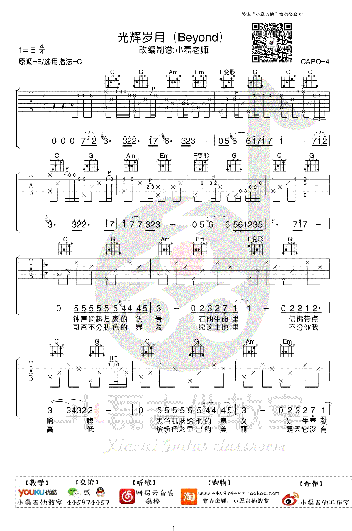 - 光辉岁月吉他谱 BEYOND 高清弹唱六线谱