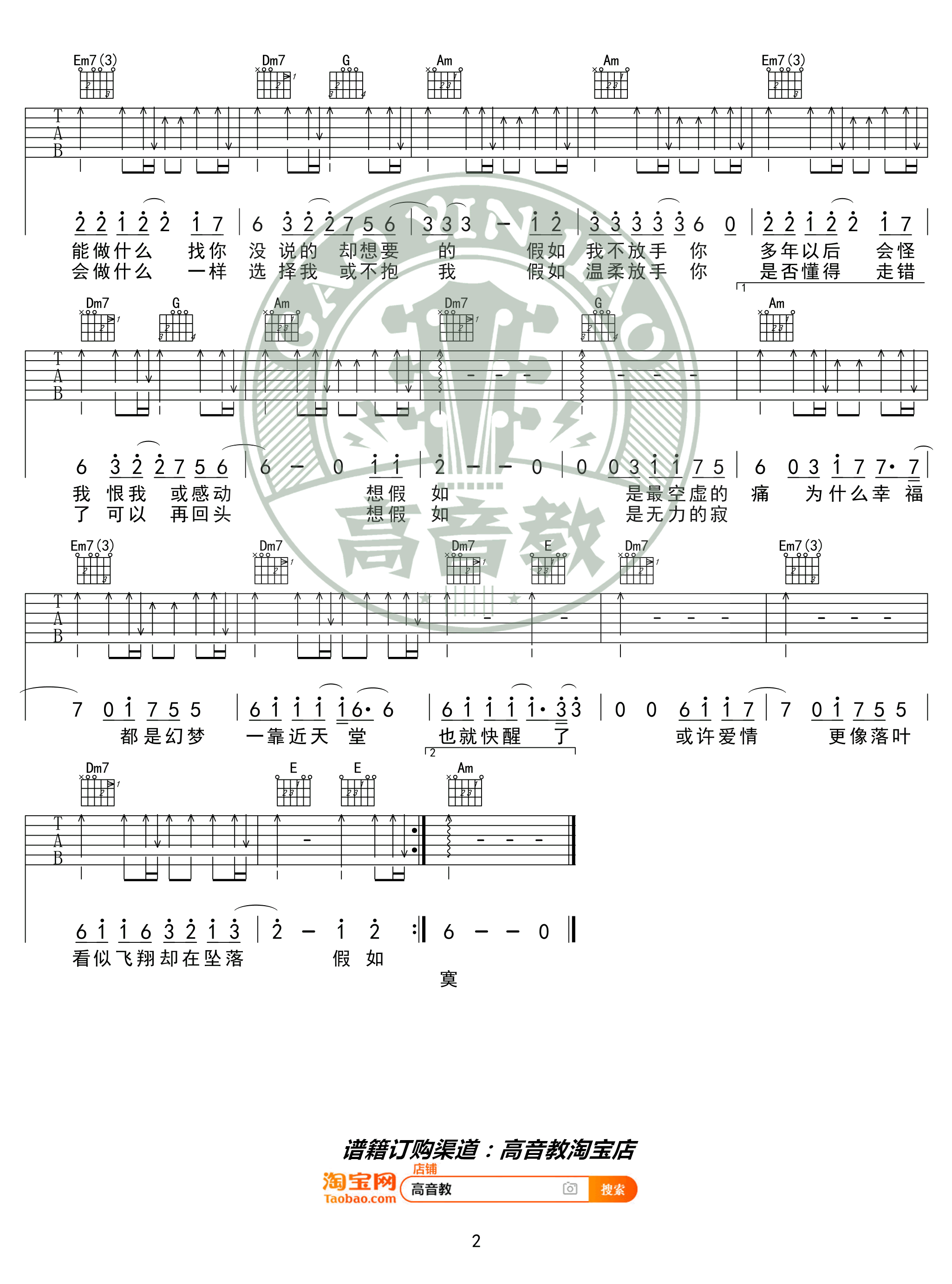 - 假装吉他谱 陈雪凝 C调六线谱 高清图片谱