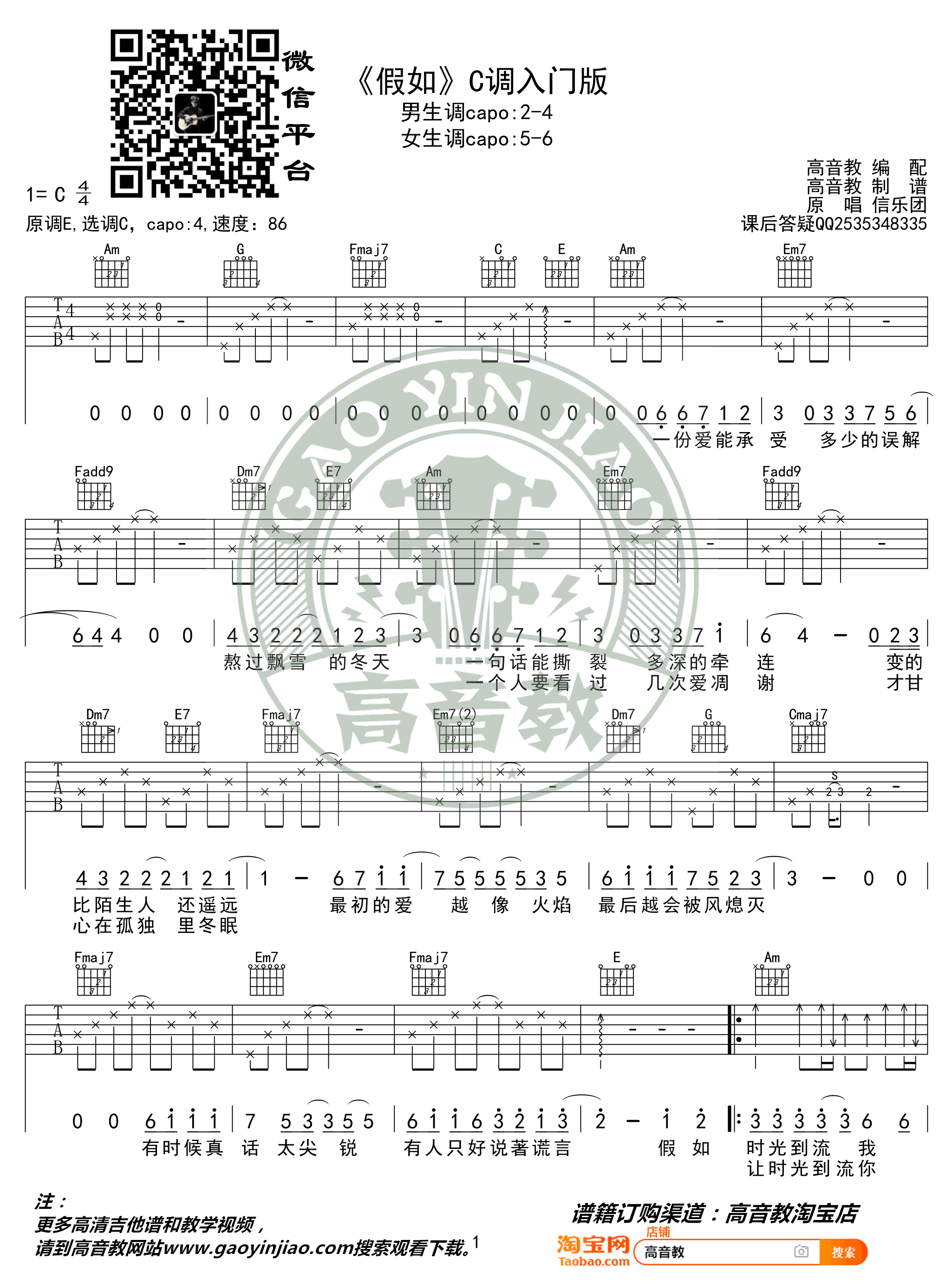 - 遥远的你吉他谱 C调简单版 完整弹唱谱 221小伙伴