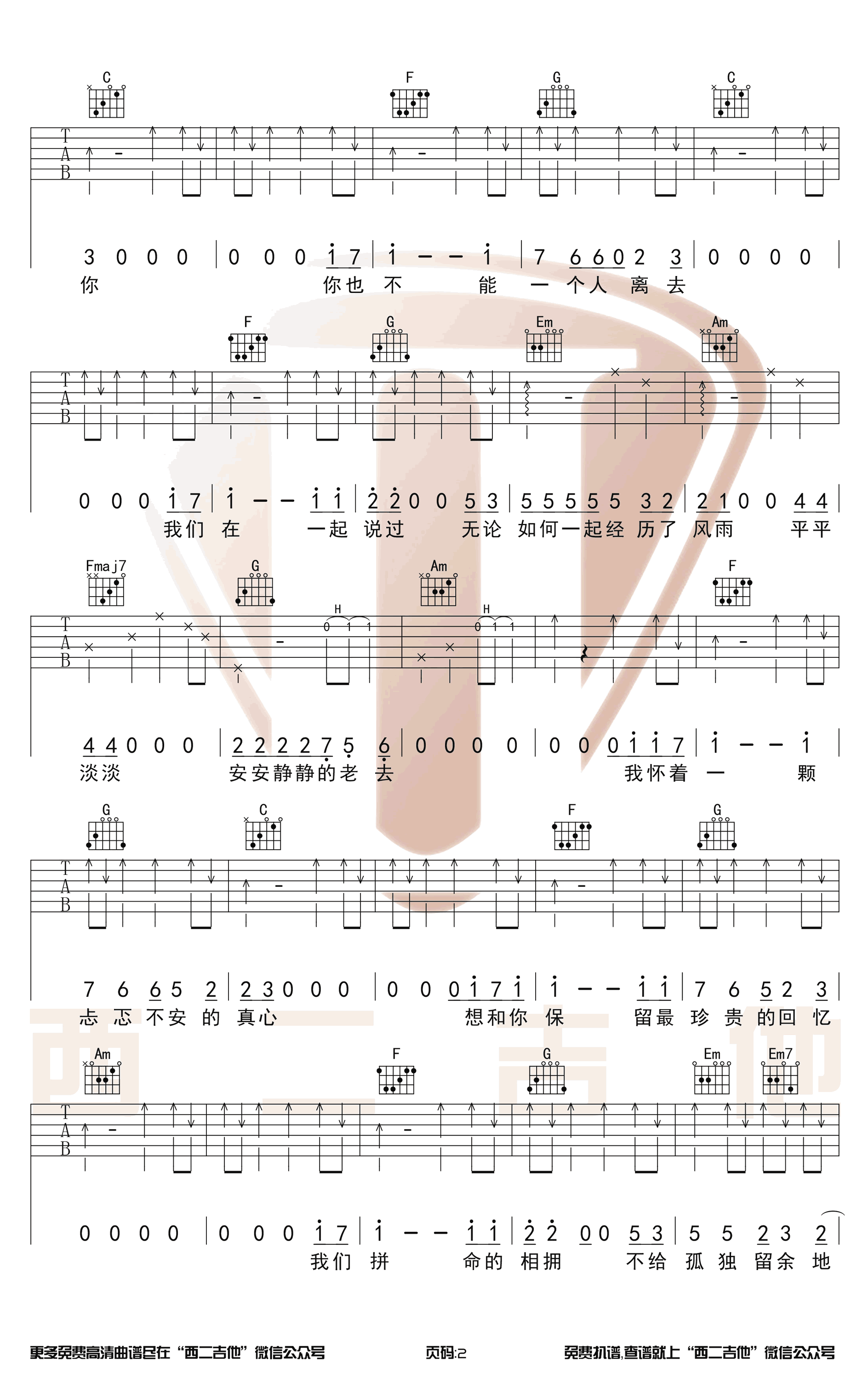 - 我曾吉他谱_隔壁老樊_C调六线谱_高清版