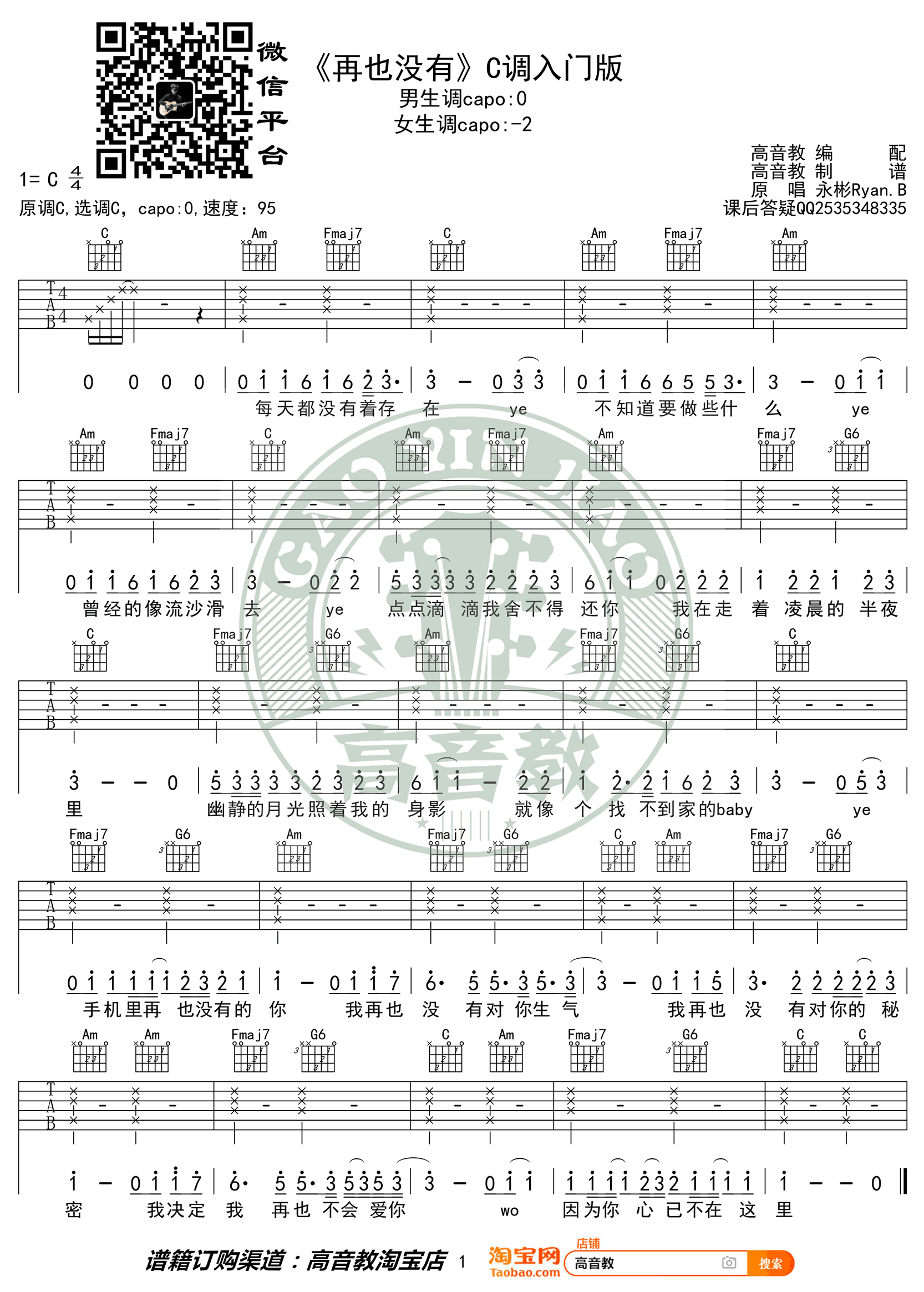 - 爱在吉他谱 杨梓霖 G调 弹唱六线谱