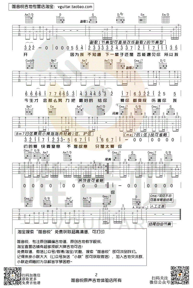 - 浮白吉他谱 花粥&胜娚 C调六线谱 高清弹唱谱
