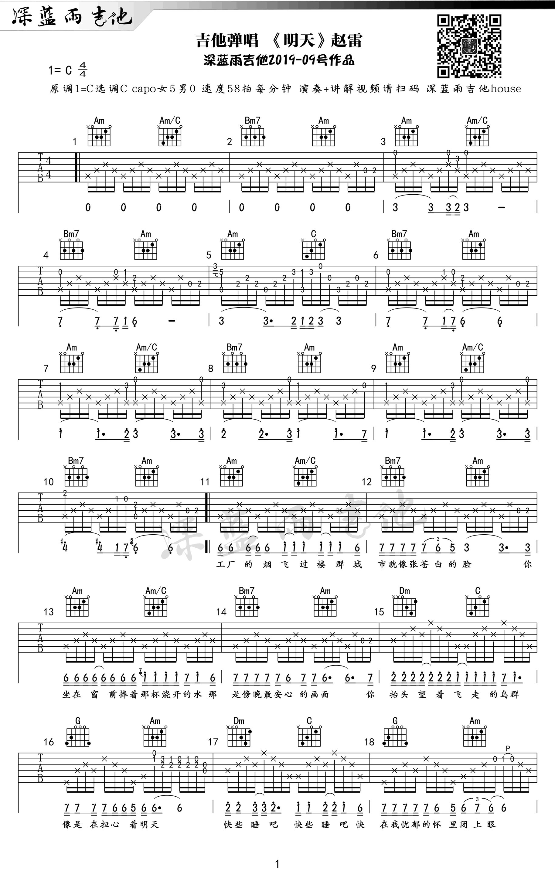 - 赵雷《明天》吉他谱_C调弹唱谱_大事发声现场版