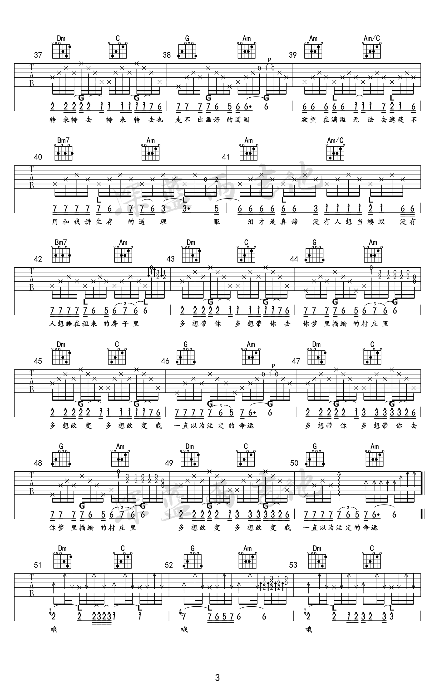- 多想在平庸的生活拥抱你吉他谱 隔壁老樊 C调六线谱