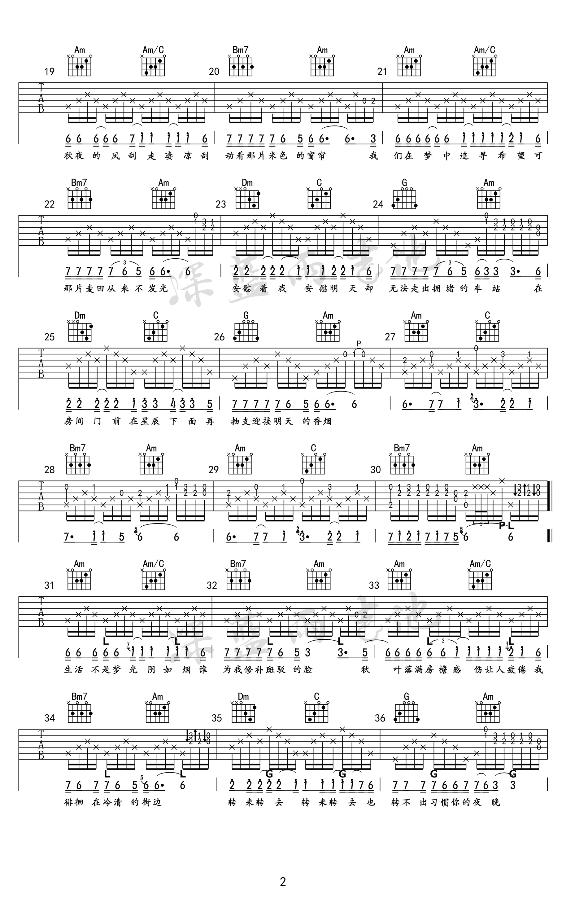 - 我曾吉他谱_隔壁老樊_C调六线谱_高清版
