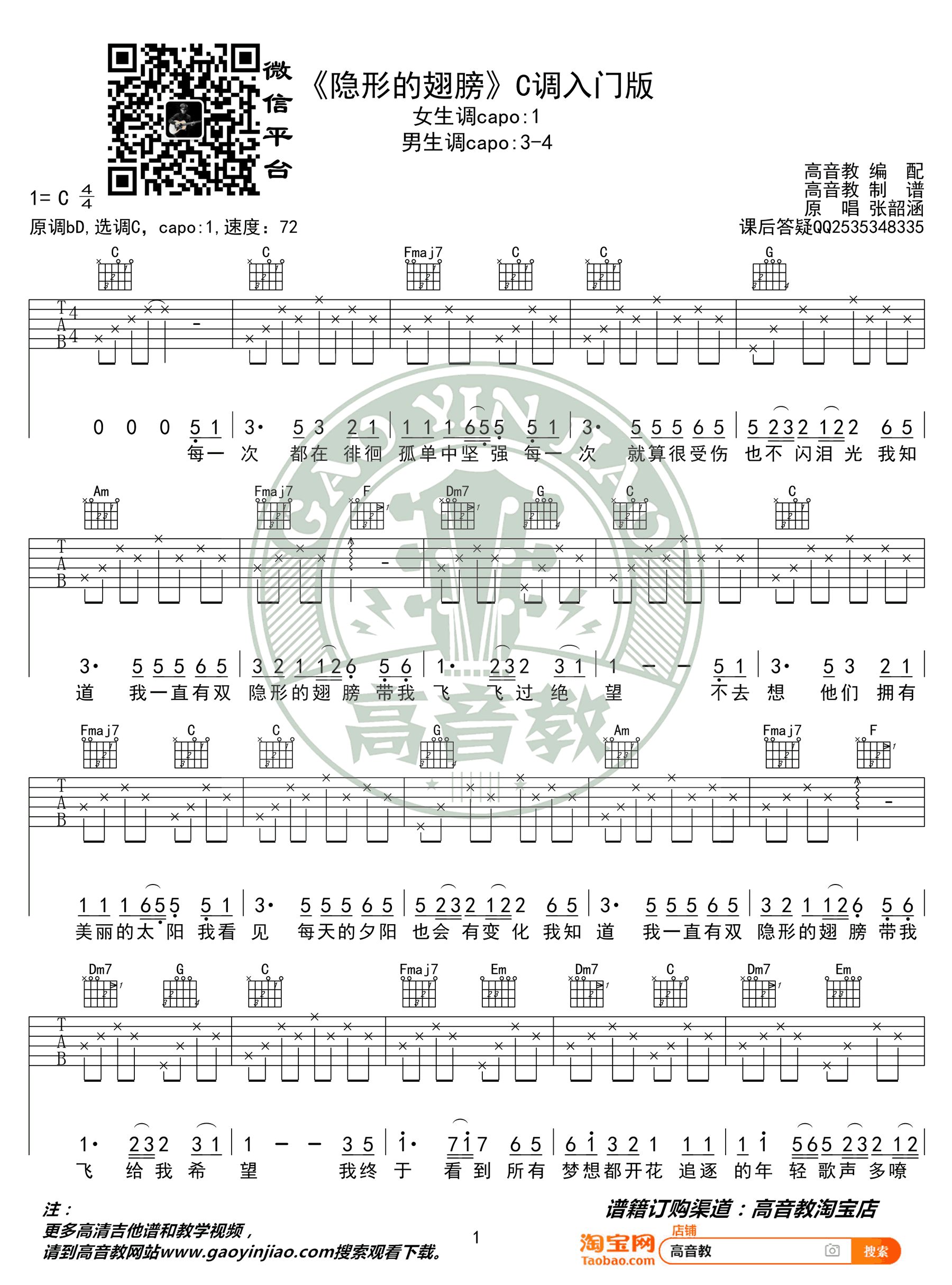- 我曾吉他谱_隔壁老樊_C调六线谱_高清版