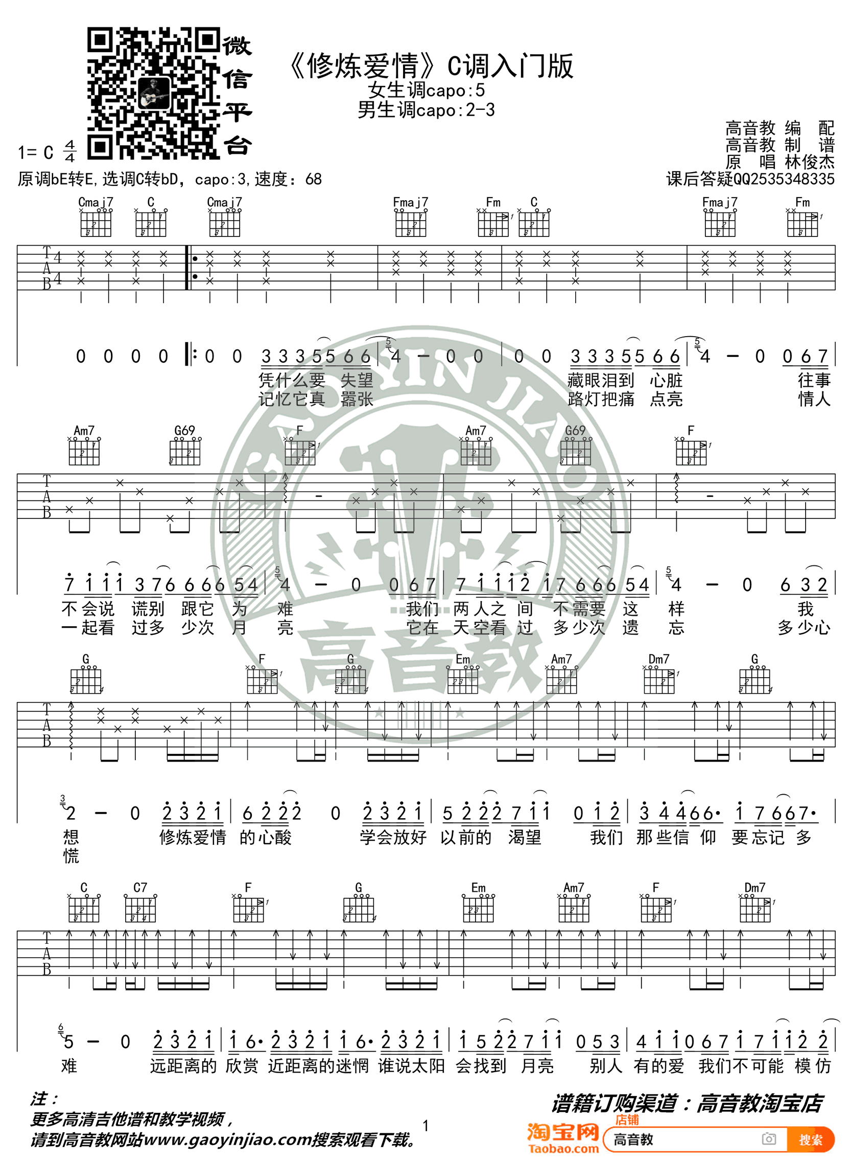 - 小酒窝吉他谱C调_林俊杰&蔡卓妍_高清六线谱