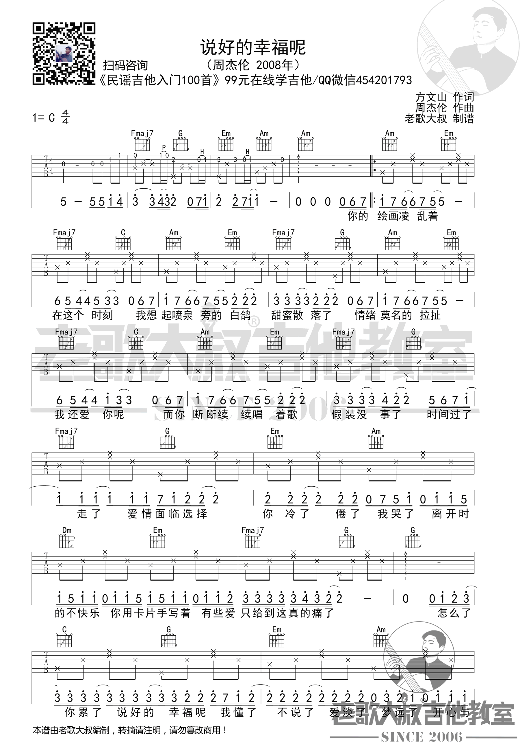 - 等你下课吉他谱 周杰伦 G调标准版 高清六线谱