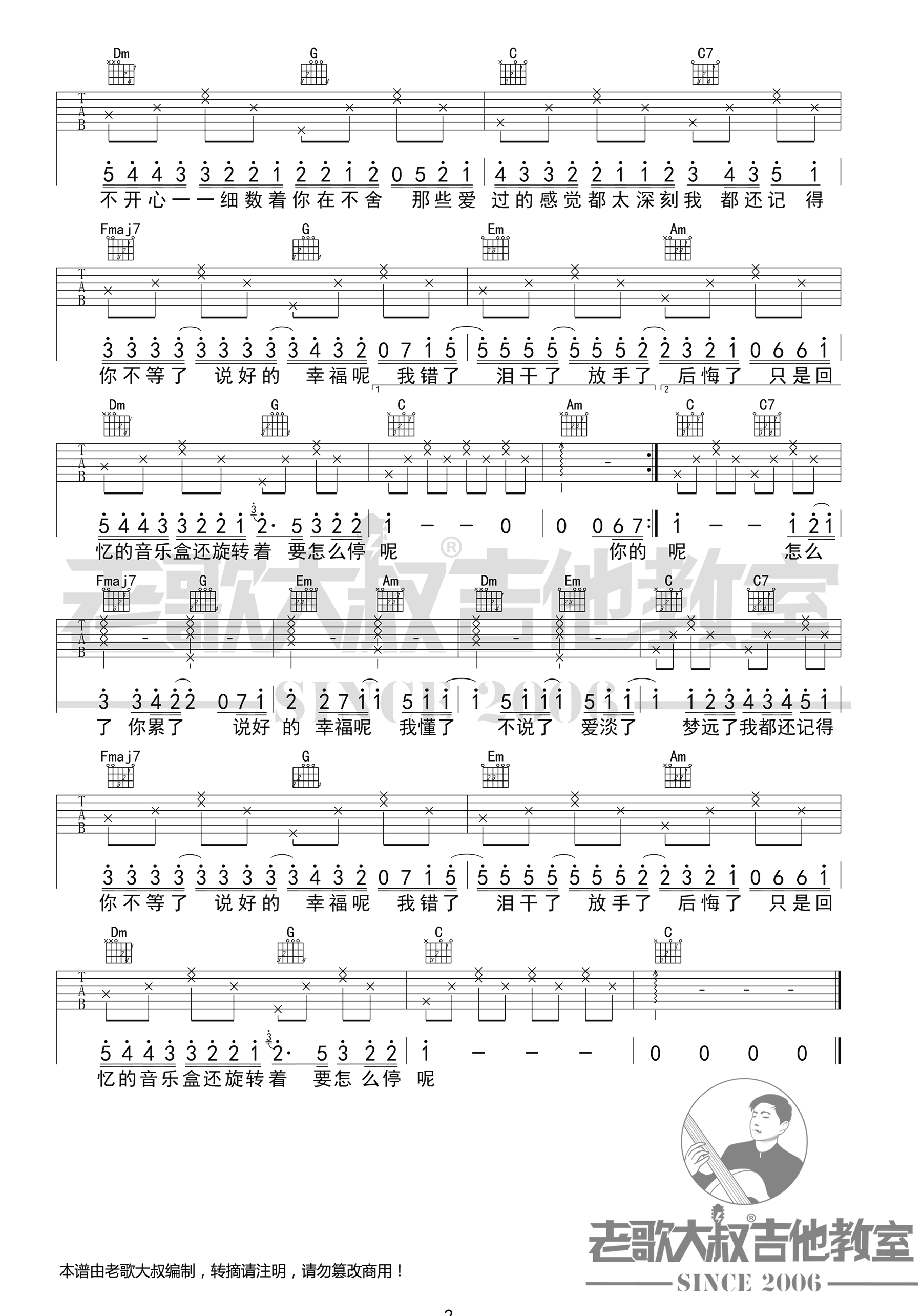 - 隔壁老樊《我曾》吉他谱_C调超原版_弹唱六线谱