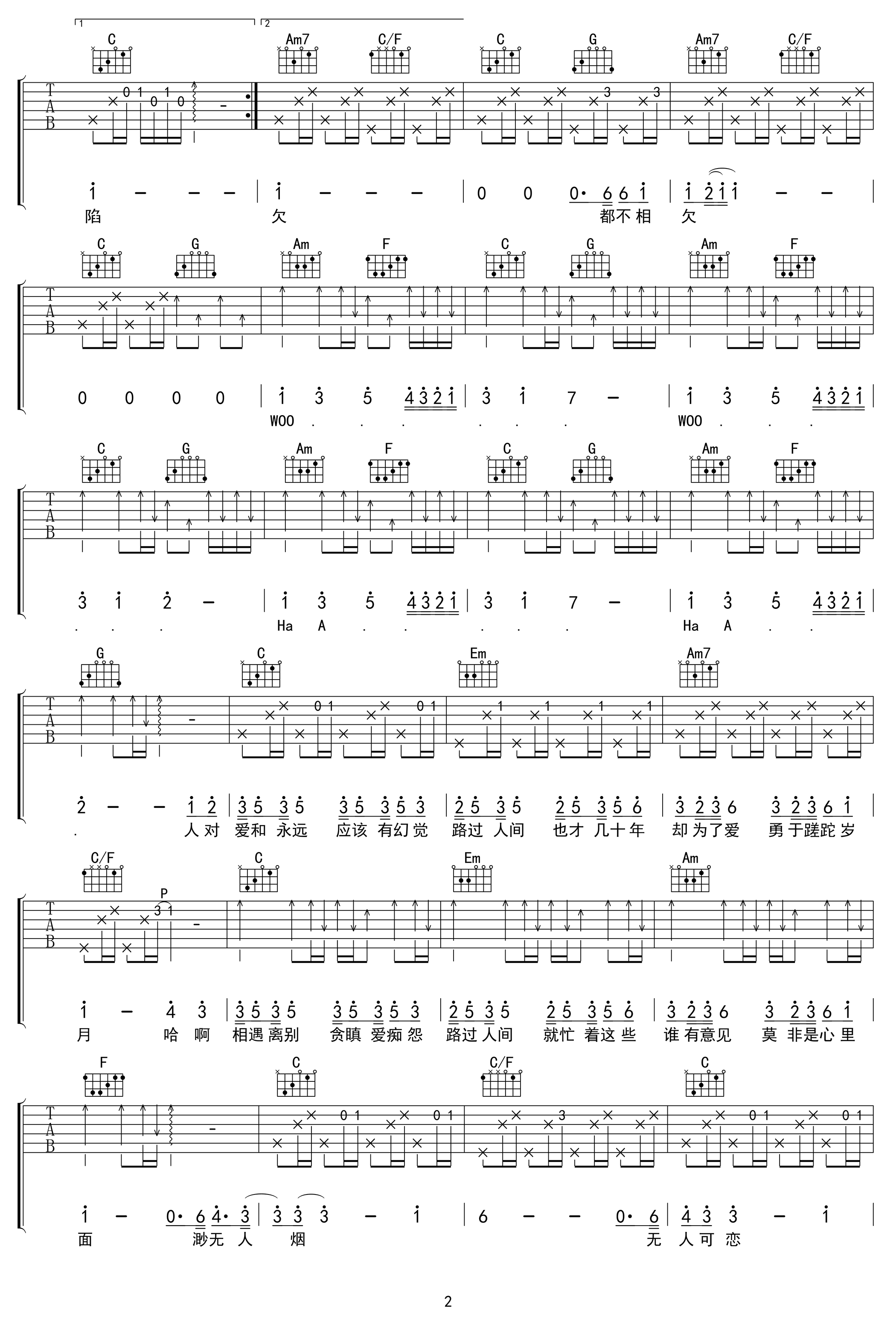 郁可唯 路过人间吉他谱2郁可唯 路过人间吉他谱3