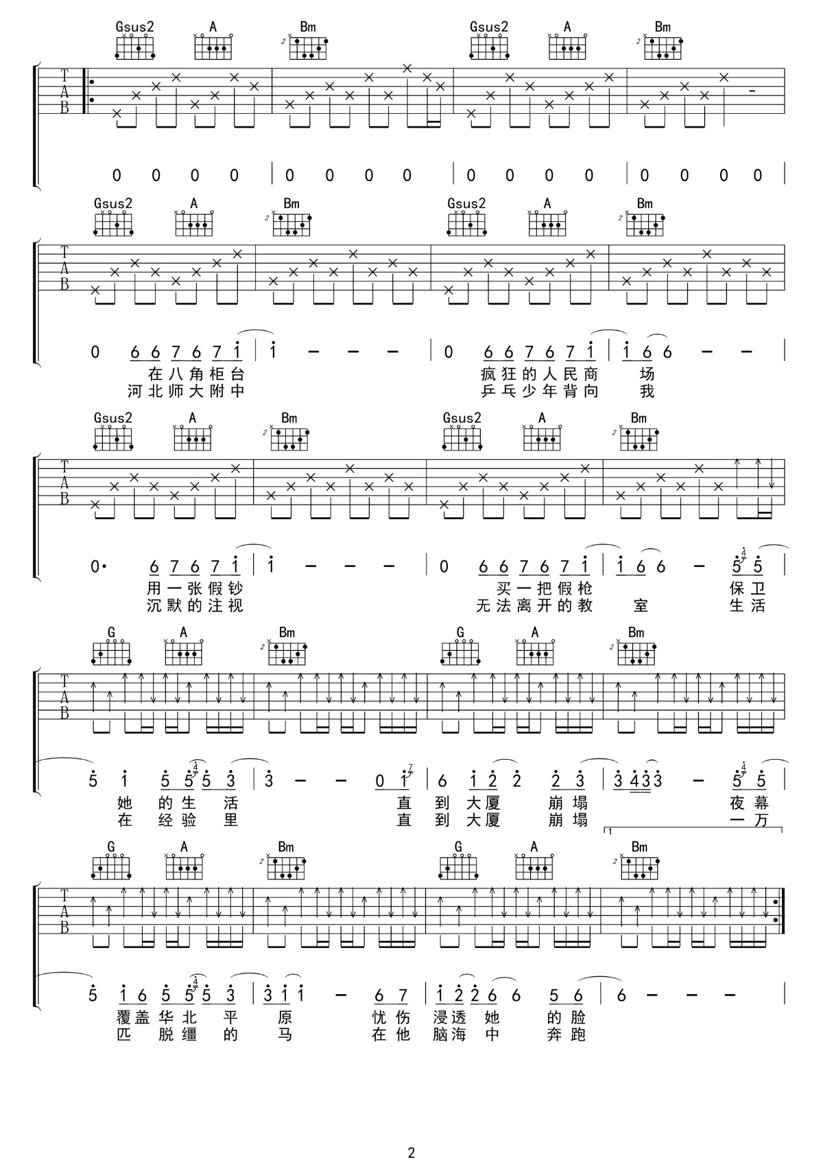 - 嘿抬头吉他谱 贰佰 G调六线谱 高清版