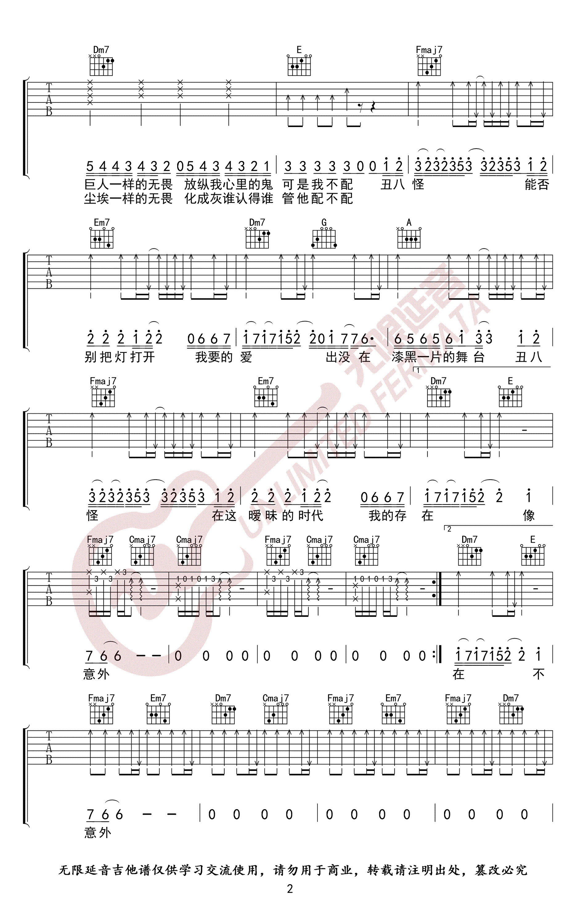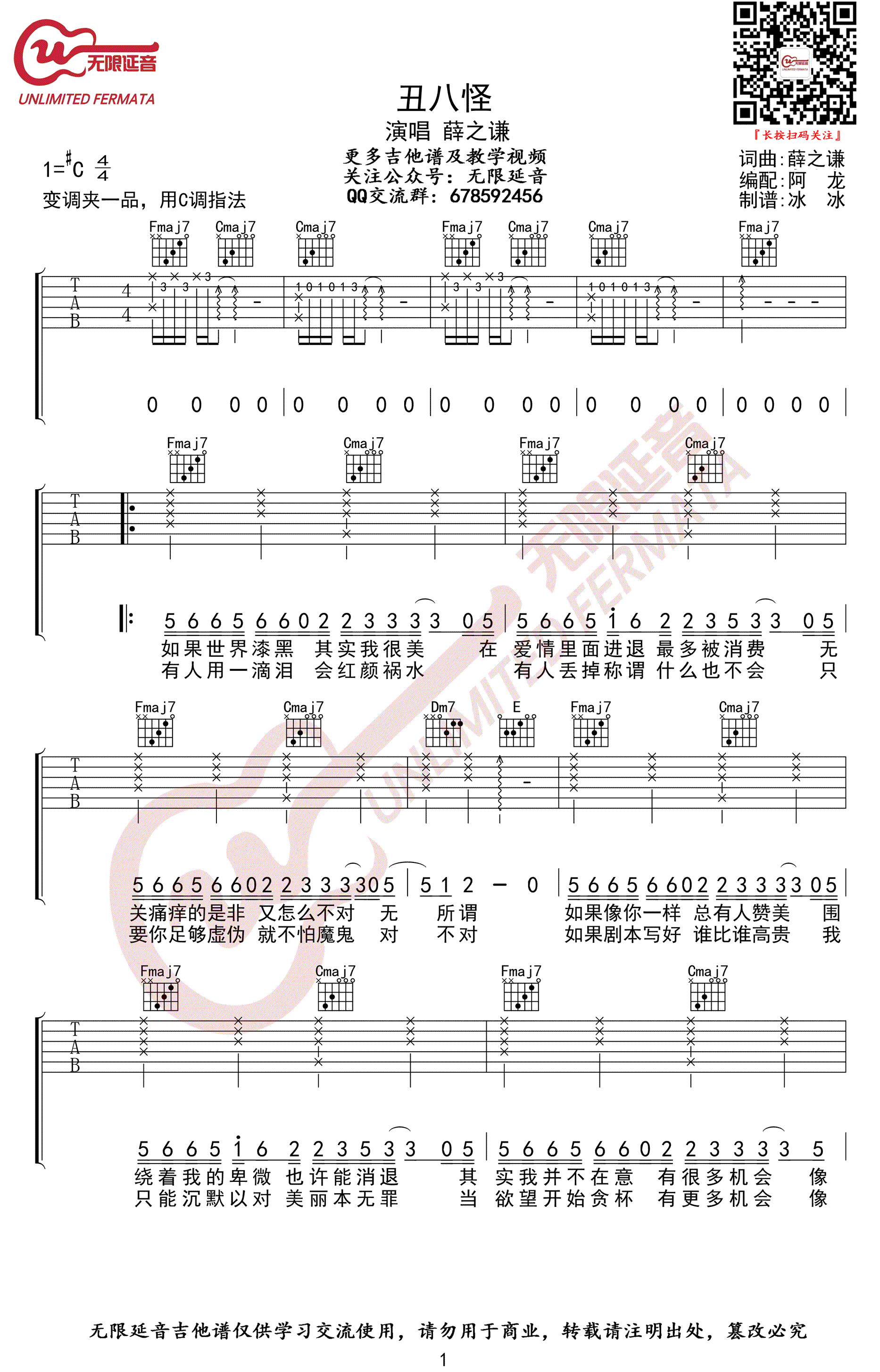 - 怪咖吉他谱 薛之谦《无限歌谣季》弹唱谱 吉他示范视频