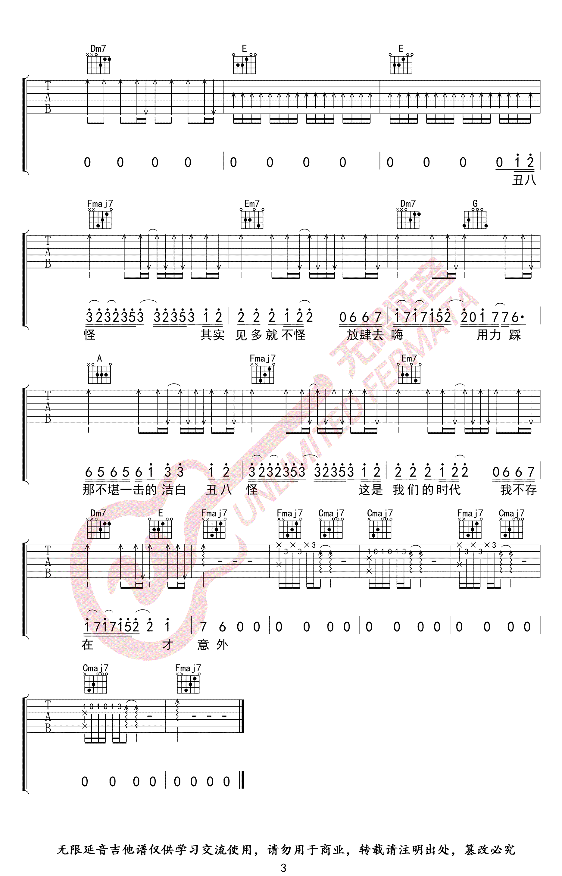 - 怪咖吉他谱 薛之谦 G调指法编配 高清弹唱谱
