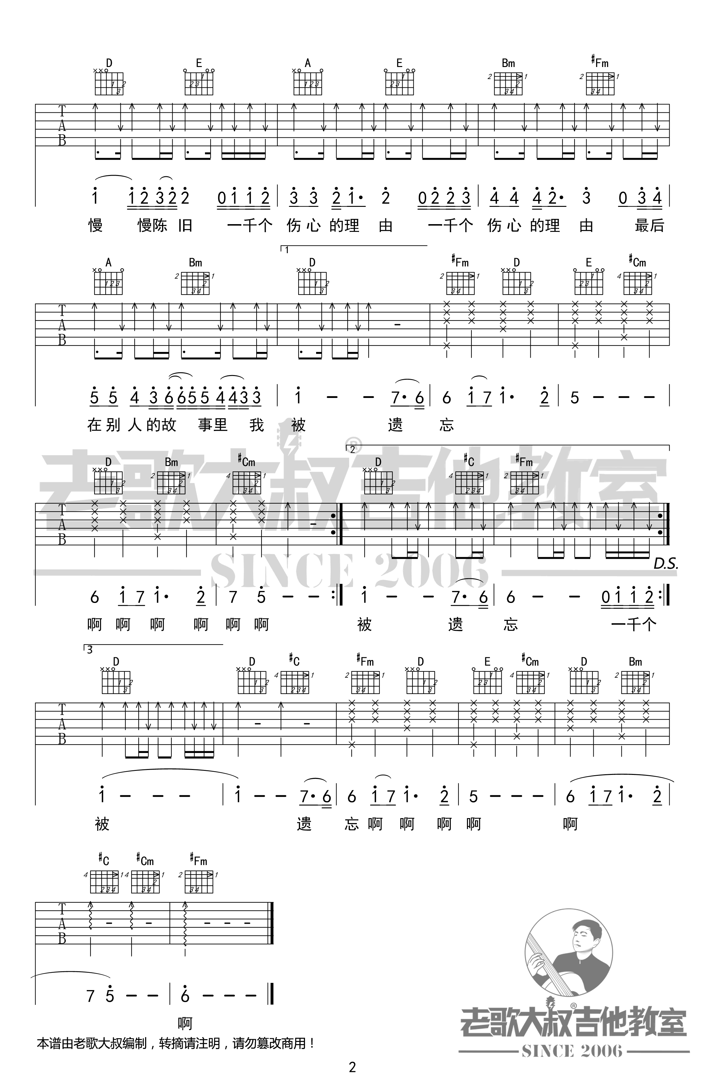 - 我曾吉他谱_隔壁老樊_C调六线谱_高清版