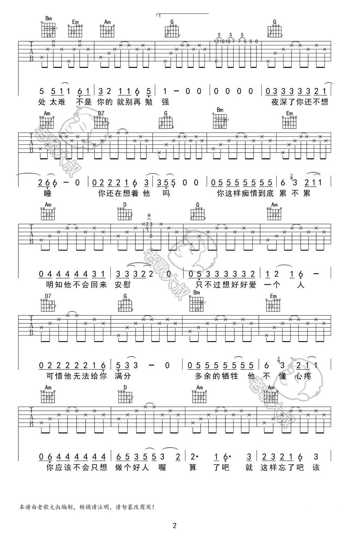 - 隔壁老樊《我曾》吉他谱_C调超原版_弹唱六线谱