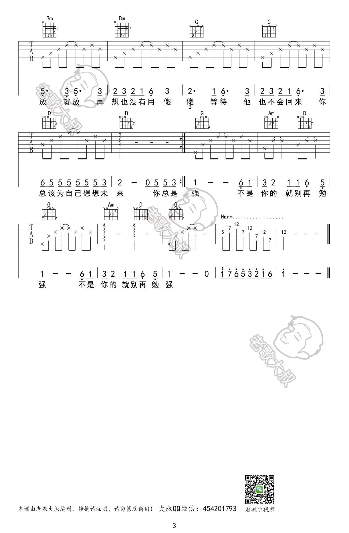 - 只是太爱你吉他谱_张敬轩《比悲伤更悲伤的故事》片尾