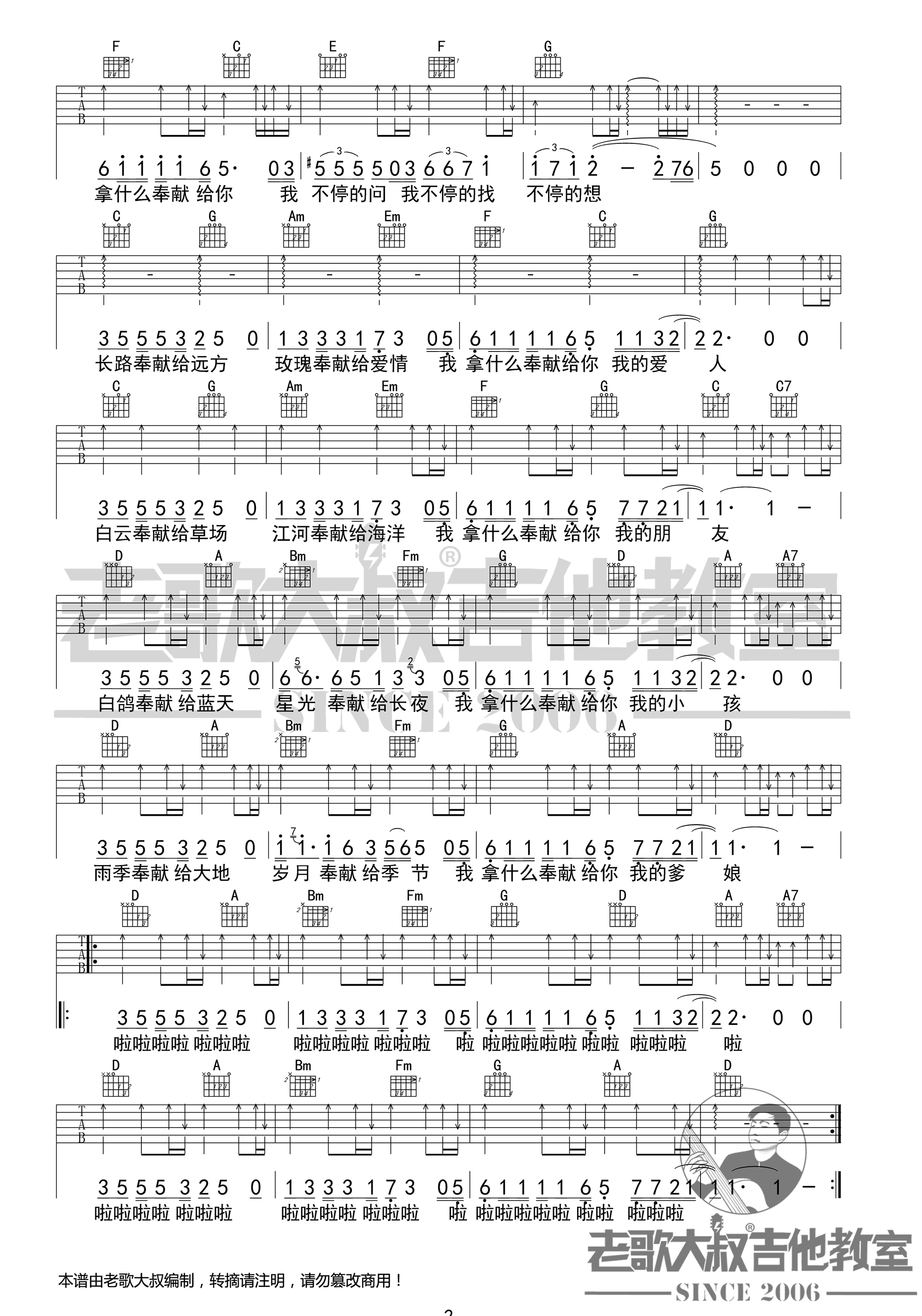 - 奉献吉他谱_苏芮_C调弹唱谱_高清六线谱