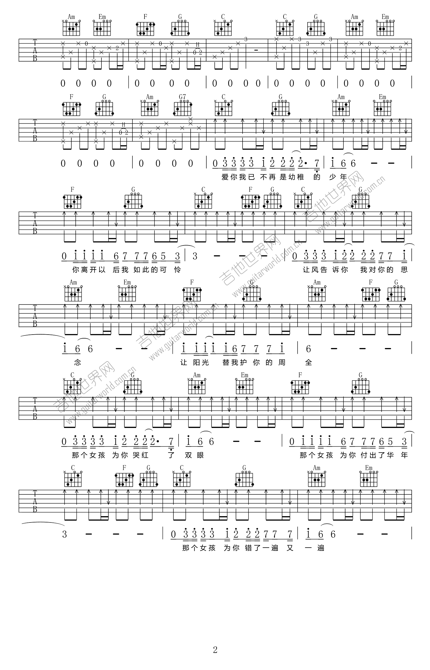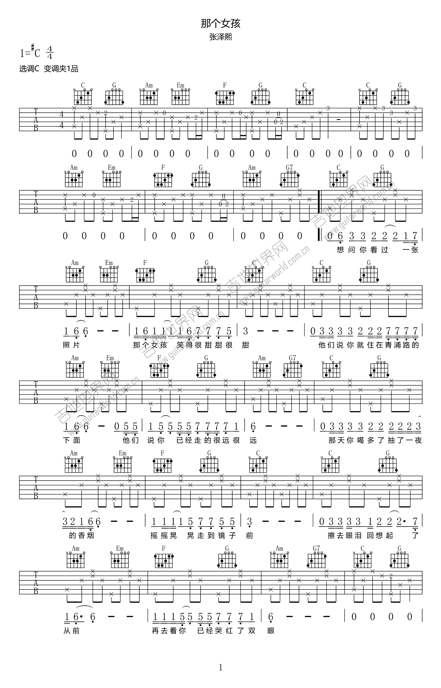 - 那个女孩吉他谱_张泽熙_C调弹唱谱_高清版