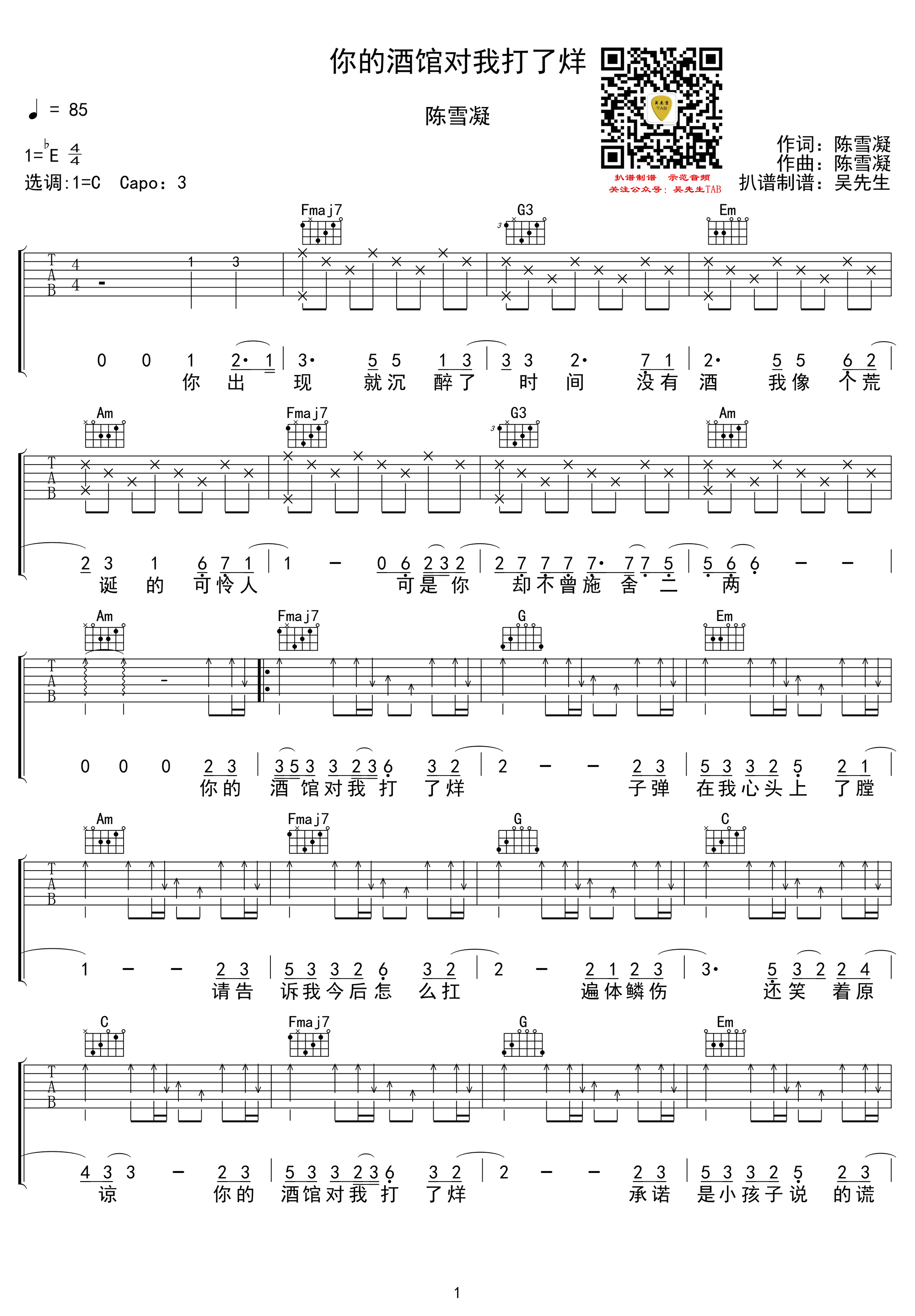 - 你的酒馆对我打了烊吉他谱_陈雪凝_原版弹唱谱