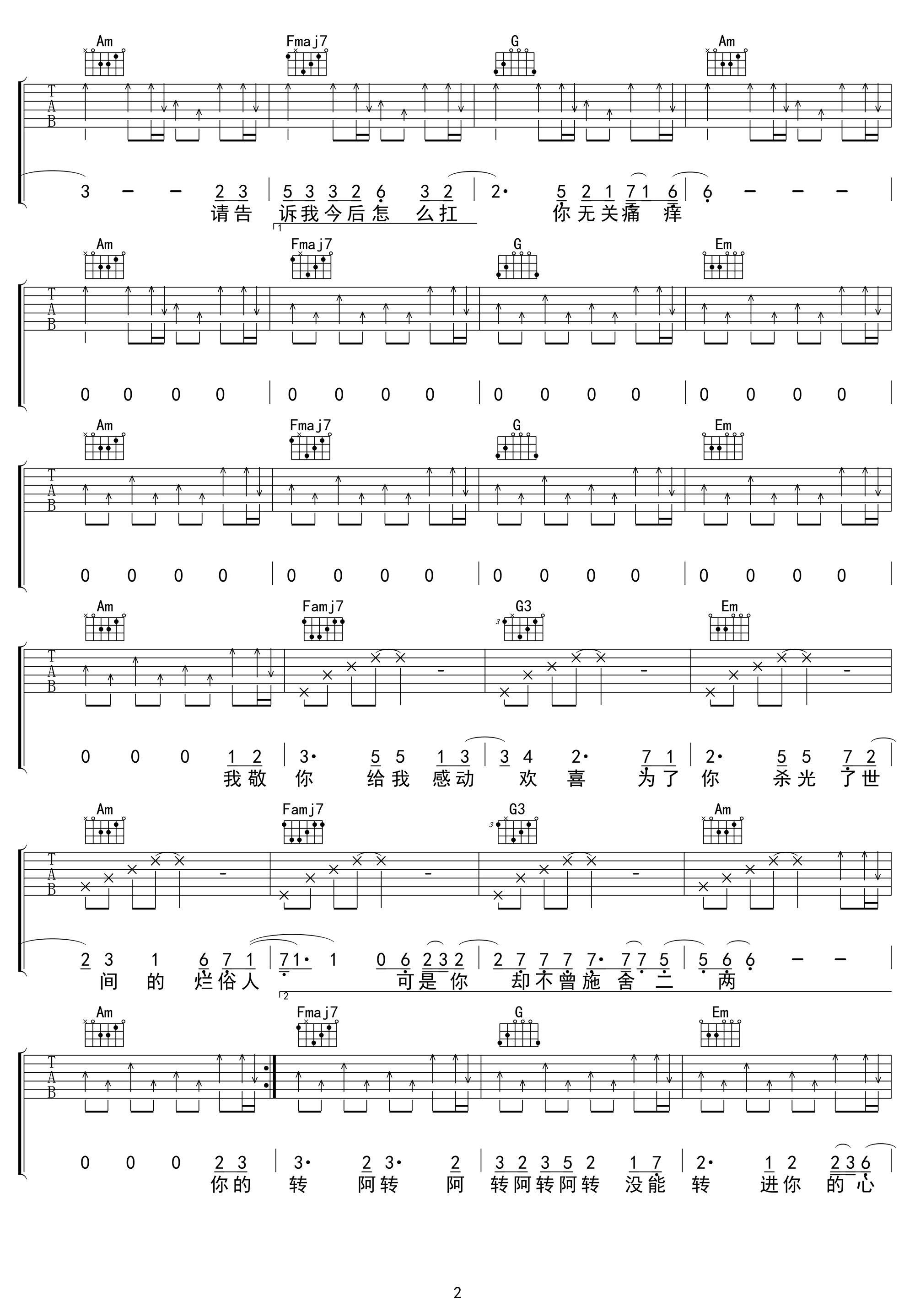 - 你的姑娘吉他谱_C调_隔壁老樊_高清六线谱