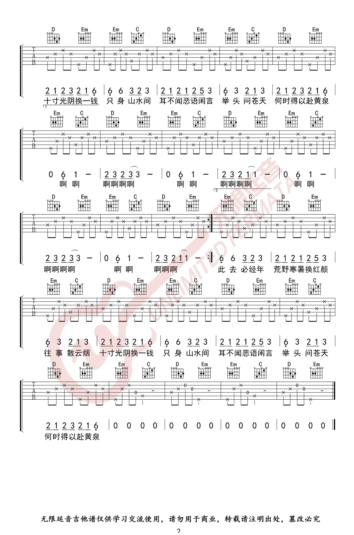 - 屌丝之歌吉他谱_手写版六线谱_花粥