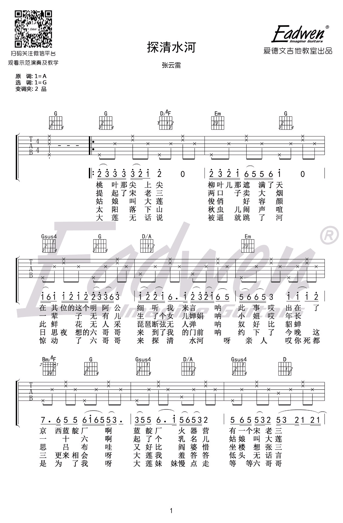 - 探清水河吉他谱_G调_弹唱教学视频_张云雷