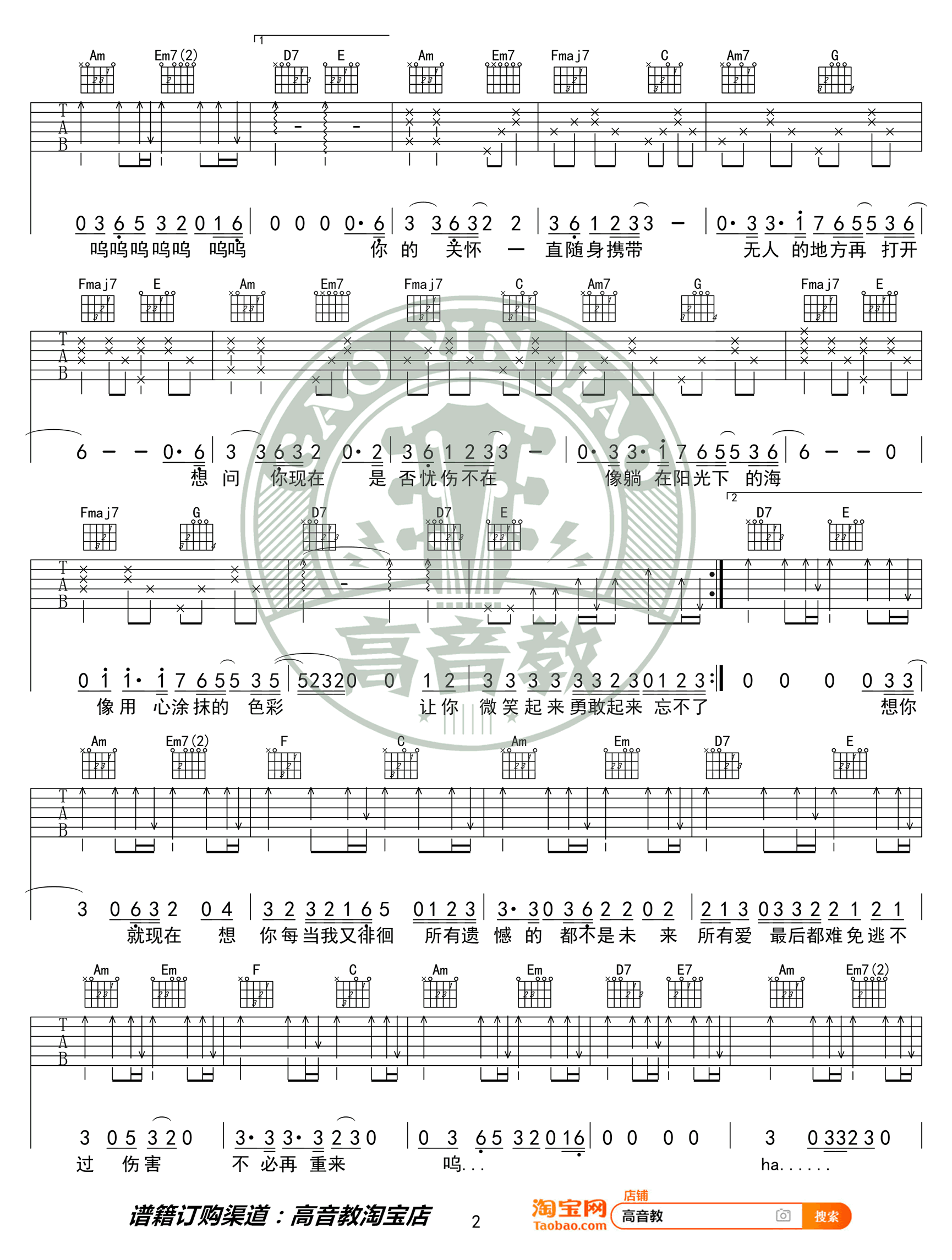 - 我的歌声里吉他谱_曲婉婷_C调六线谱_高清精华版