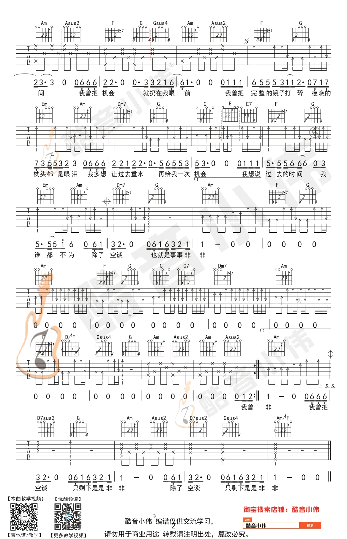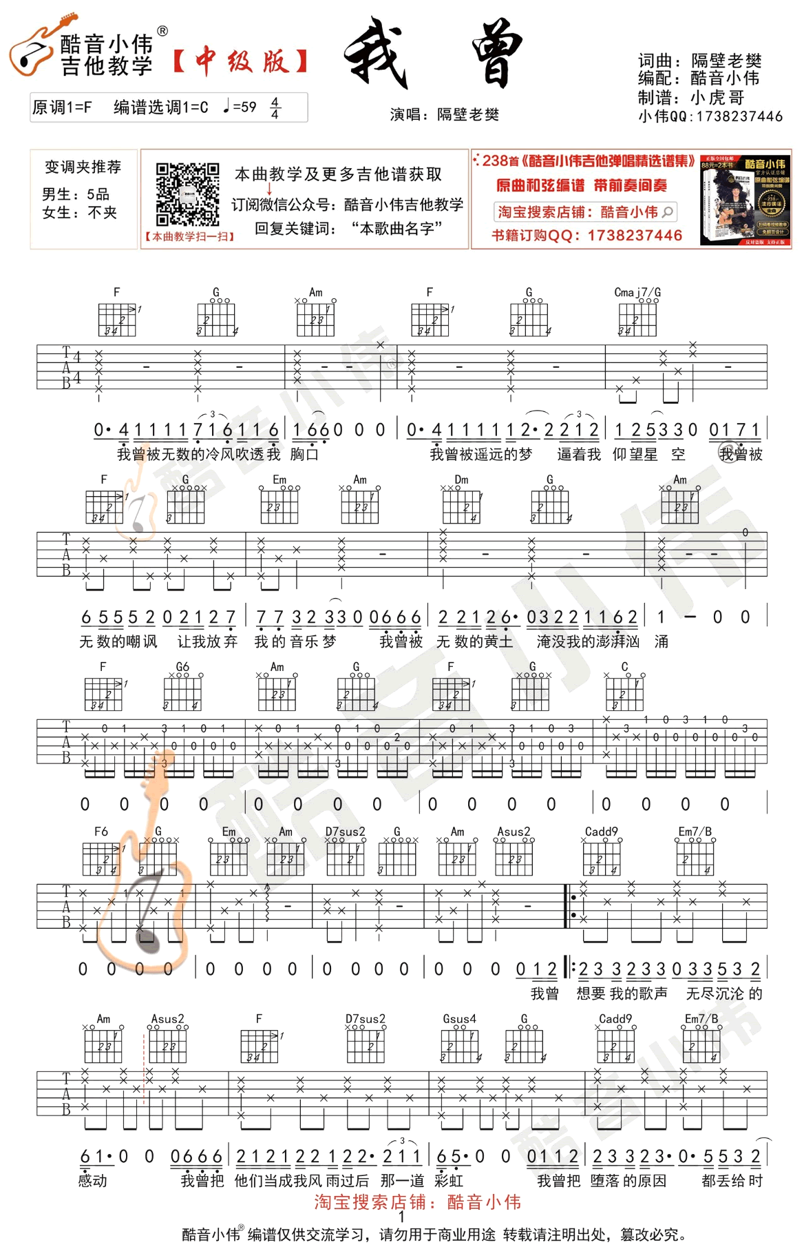 - 隔壁老樊《我曾》吉他谱_C调六线谱_弹唱教学视频