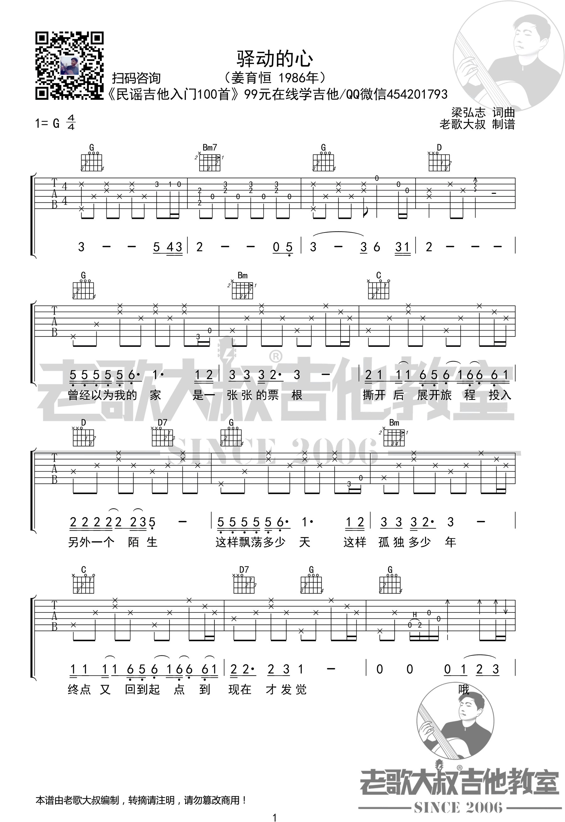 - 驿动的心吉他谱_姜育恒_G调弹唱谱_高清图片谱