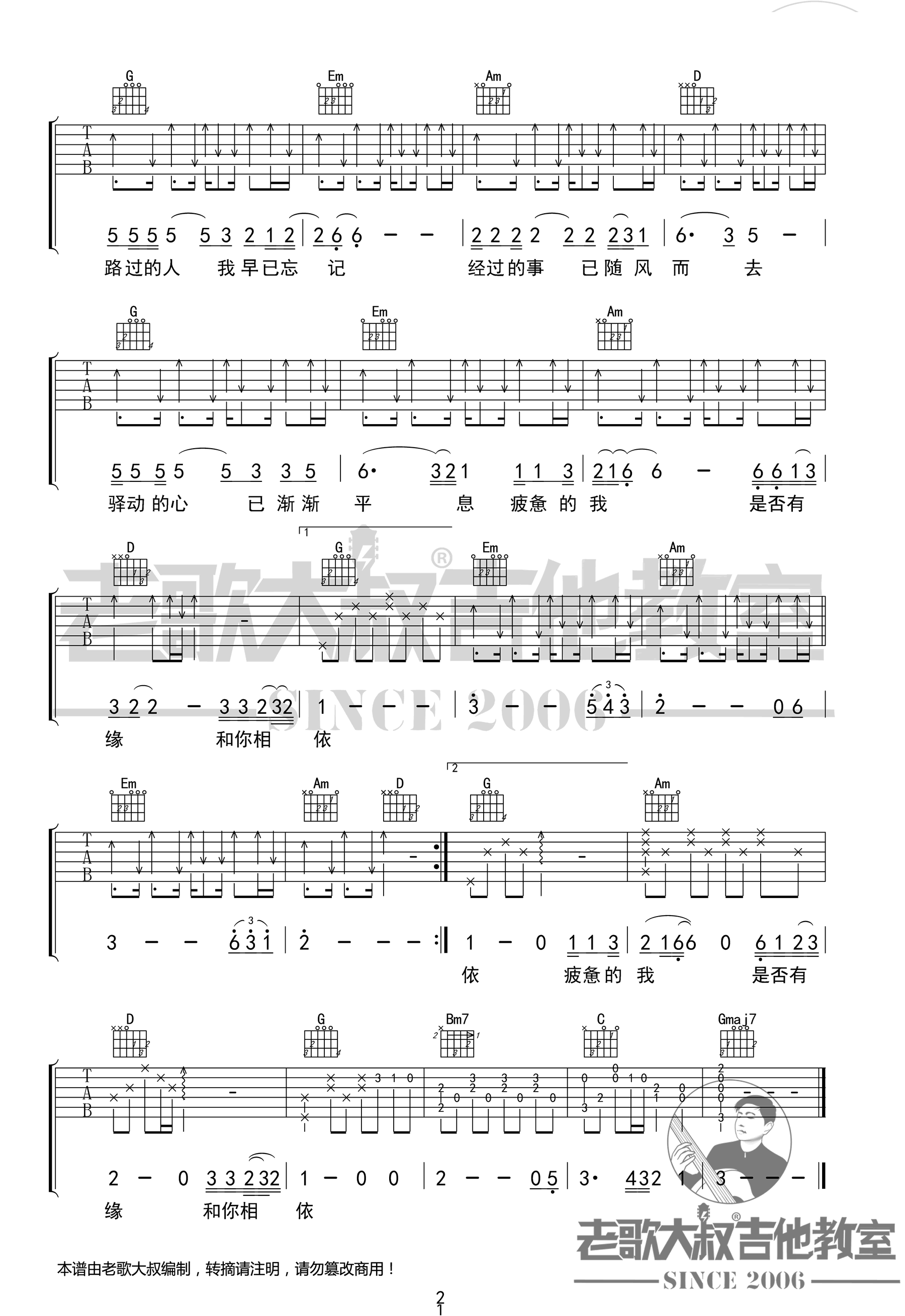 - 我曾吉他谱_隔壁老樊_C调六线谱_高清版