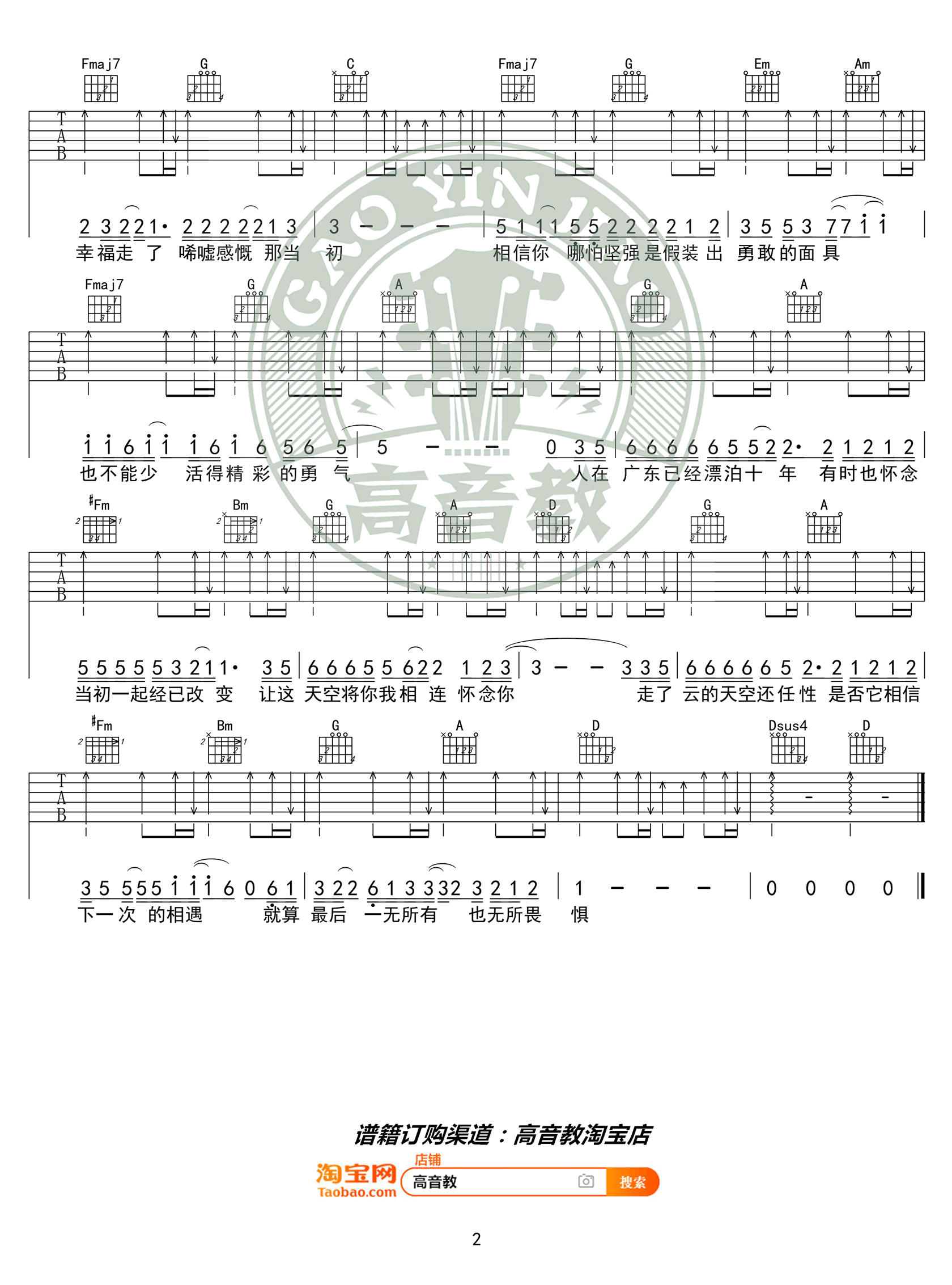 - 我曾吉他谱_隔壁老樊_C调六线谱_高清版