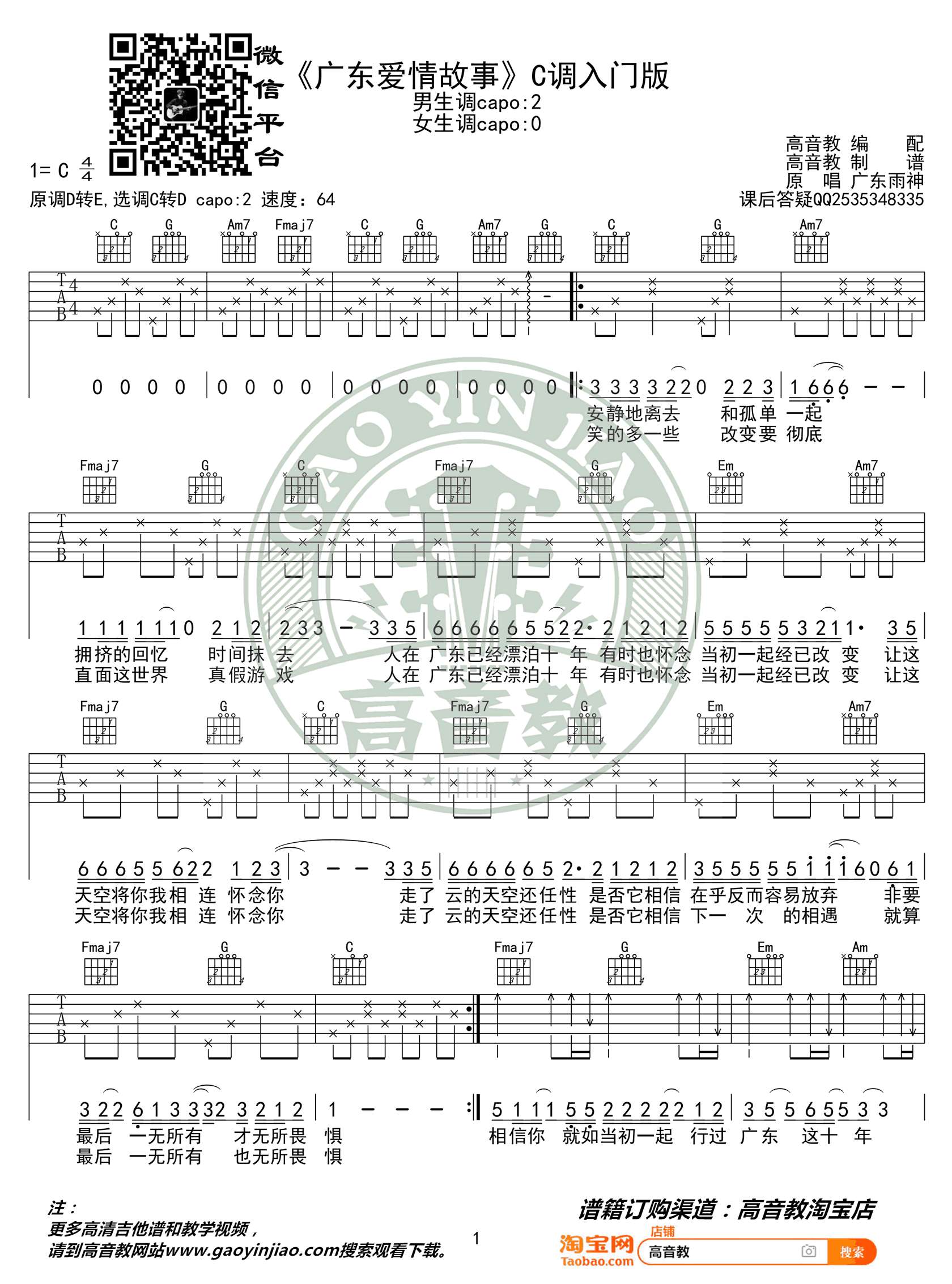 - 广东爱情故事吉他谱_广东雨神_C调简单谱_入门版