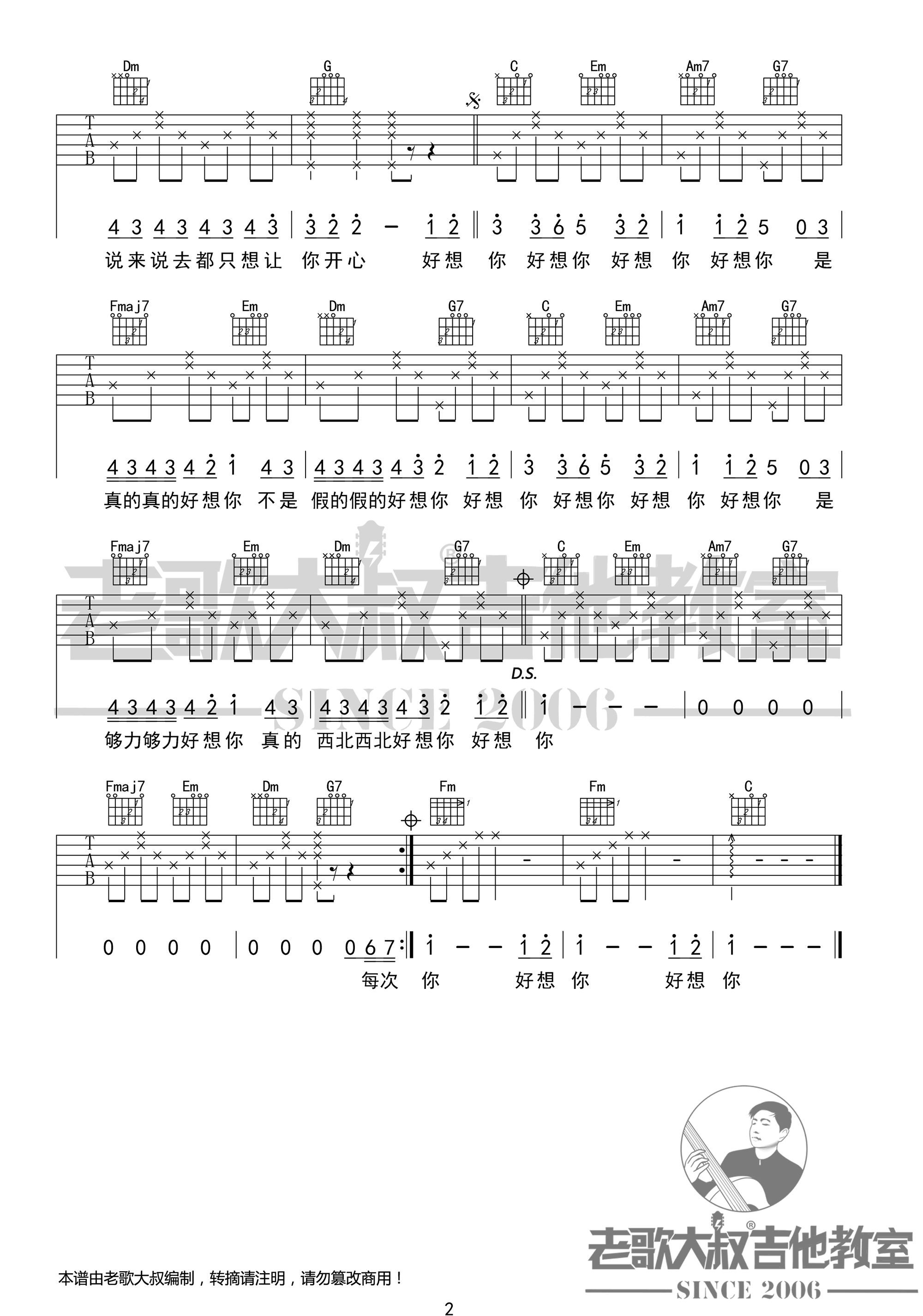 - 你的姑娘吉他谱_隔壁老樊_C调_高清弹唱谱
