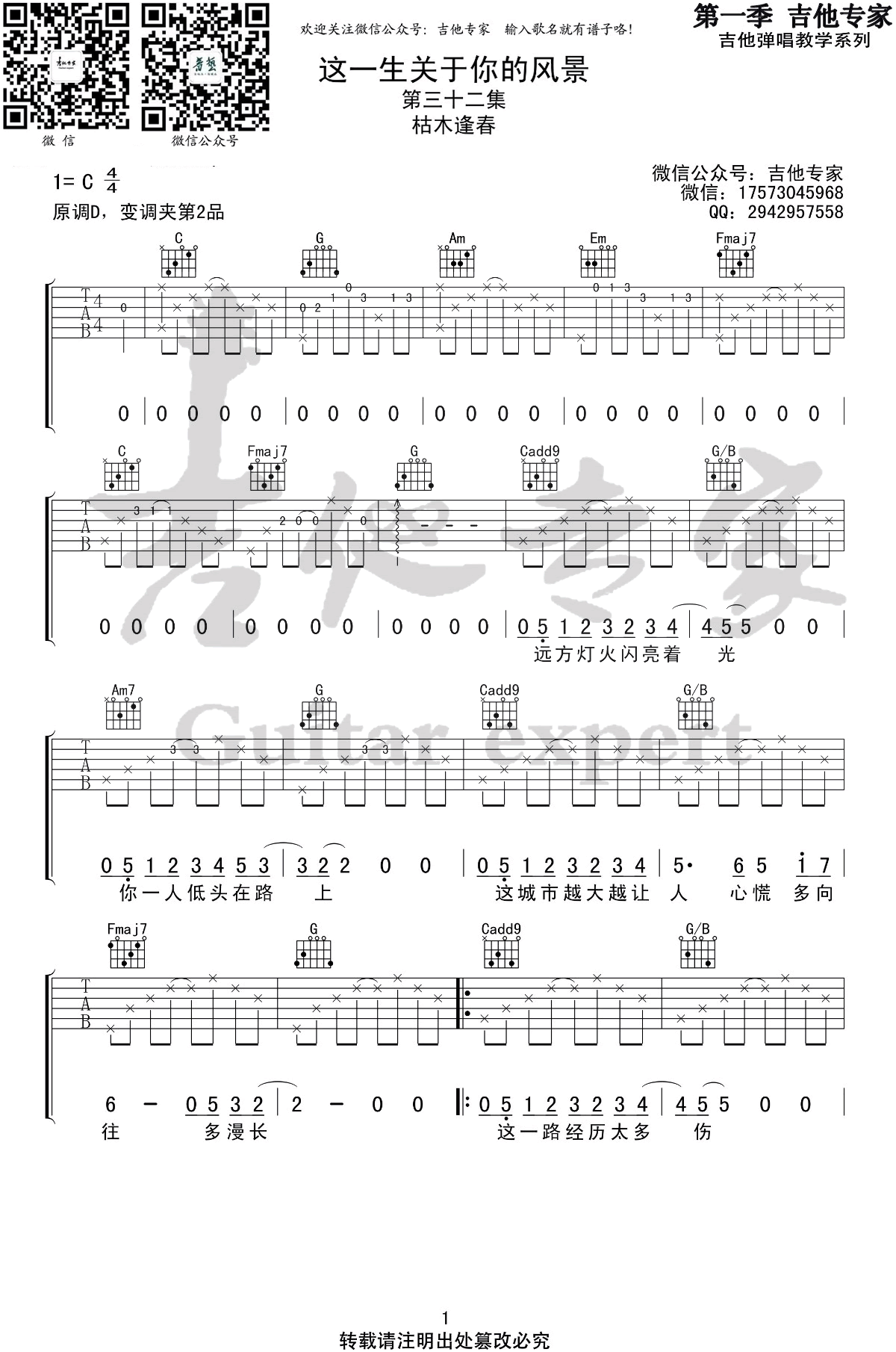 - 这一生关于你的风景吉他谱_C调弹唱谱_枯木逢春
