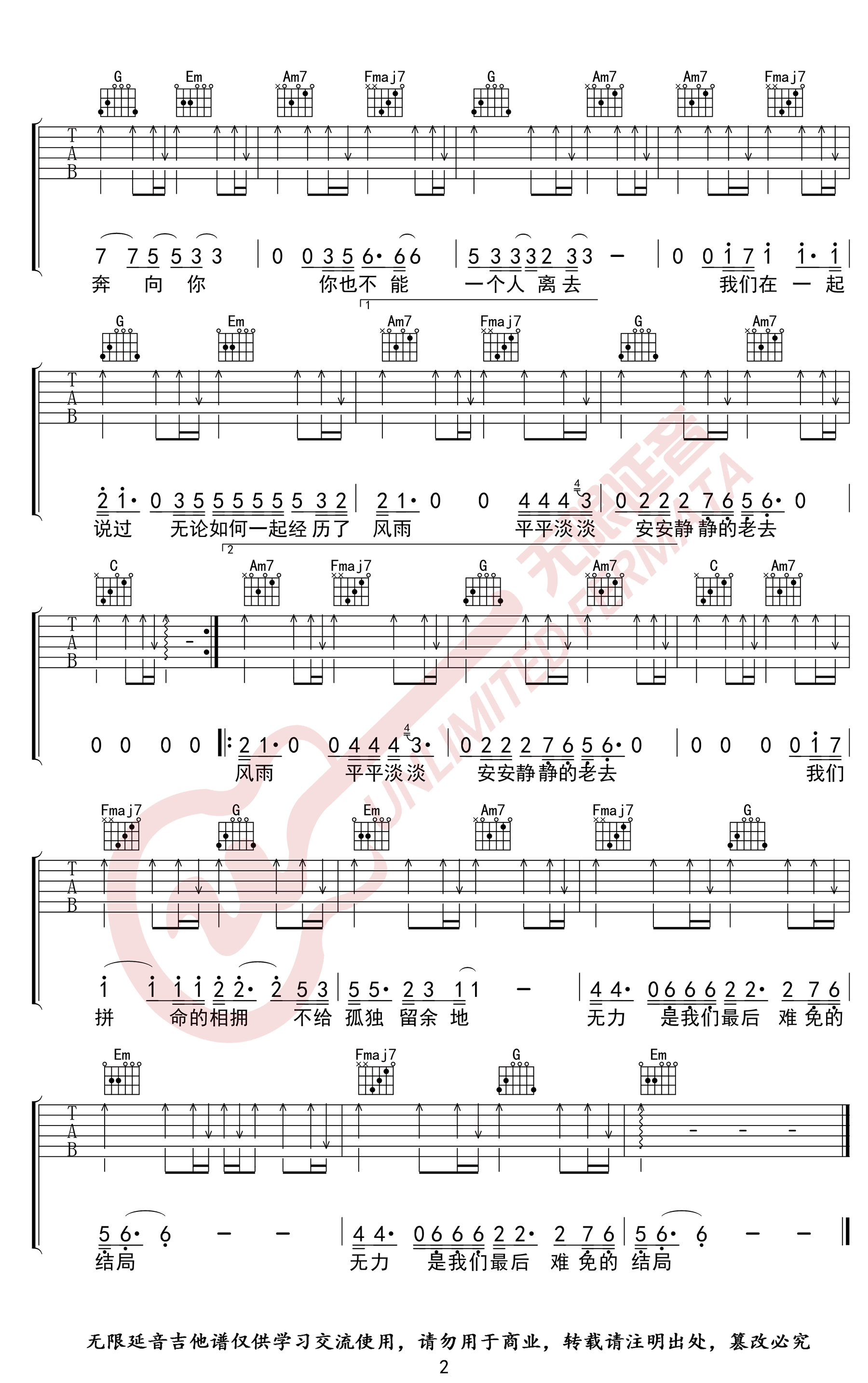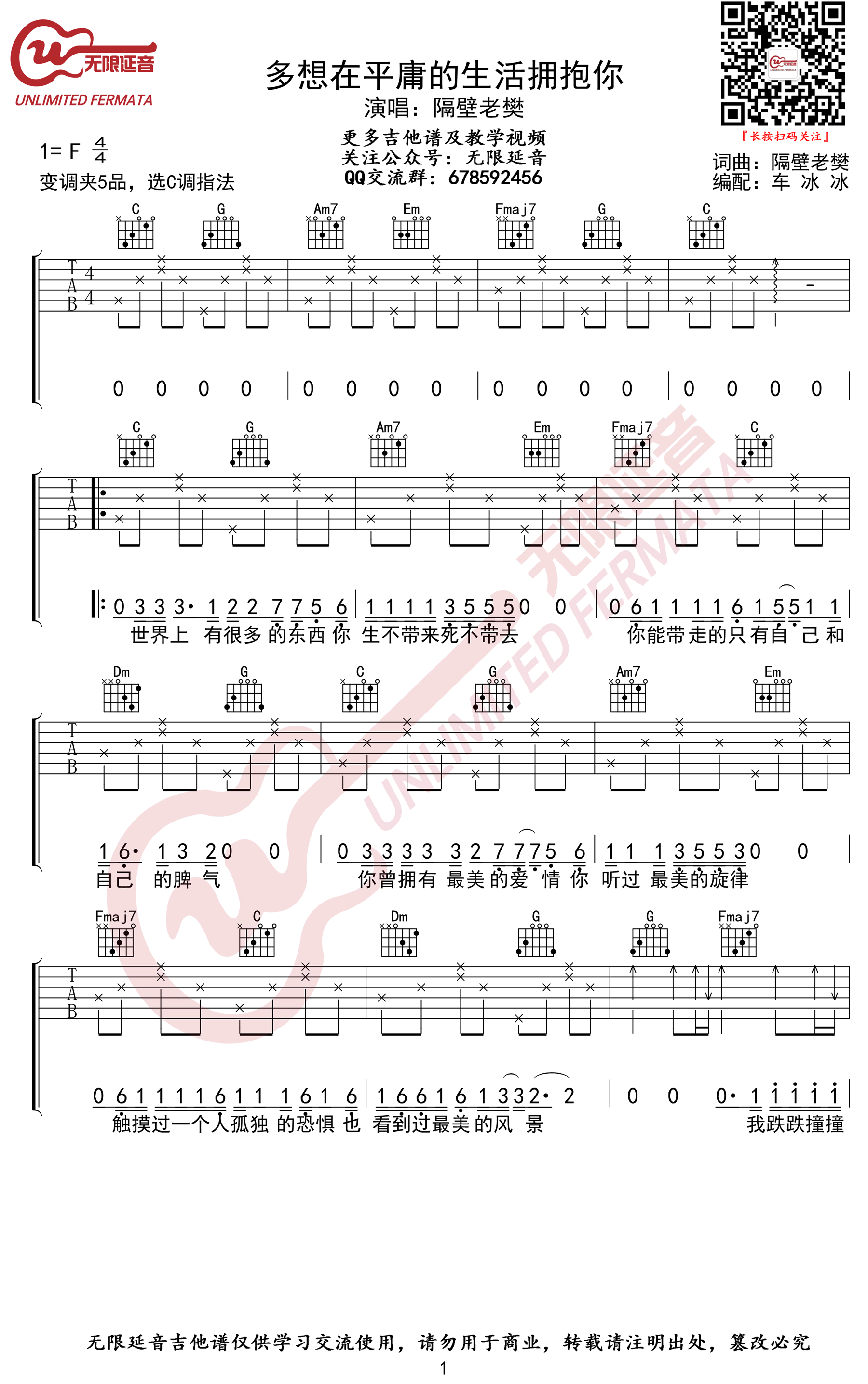 - 多想在平庸的生活拥抱你吉他谱_隔壁老樊_C调六线谱