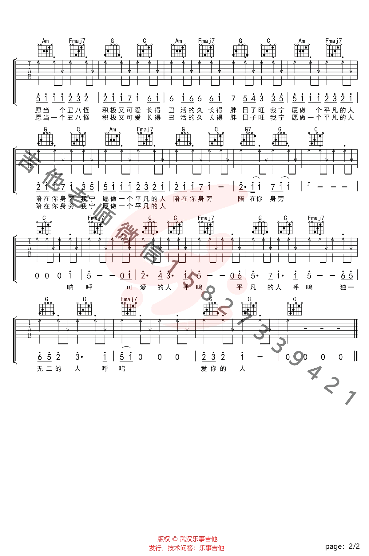 - 我愿意平凡的陪在你身旁吉他谱_C调弹唱谱_王七七