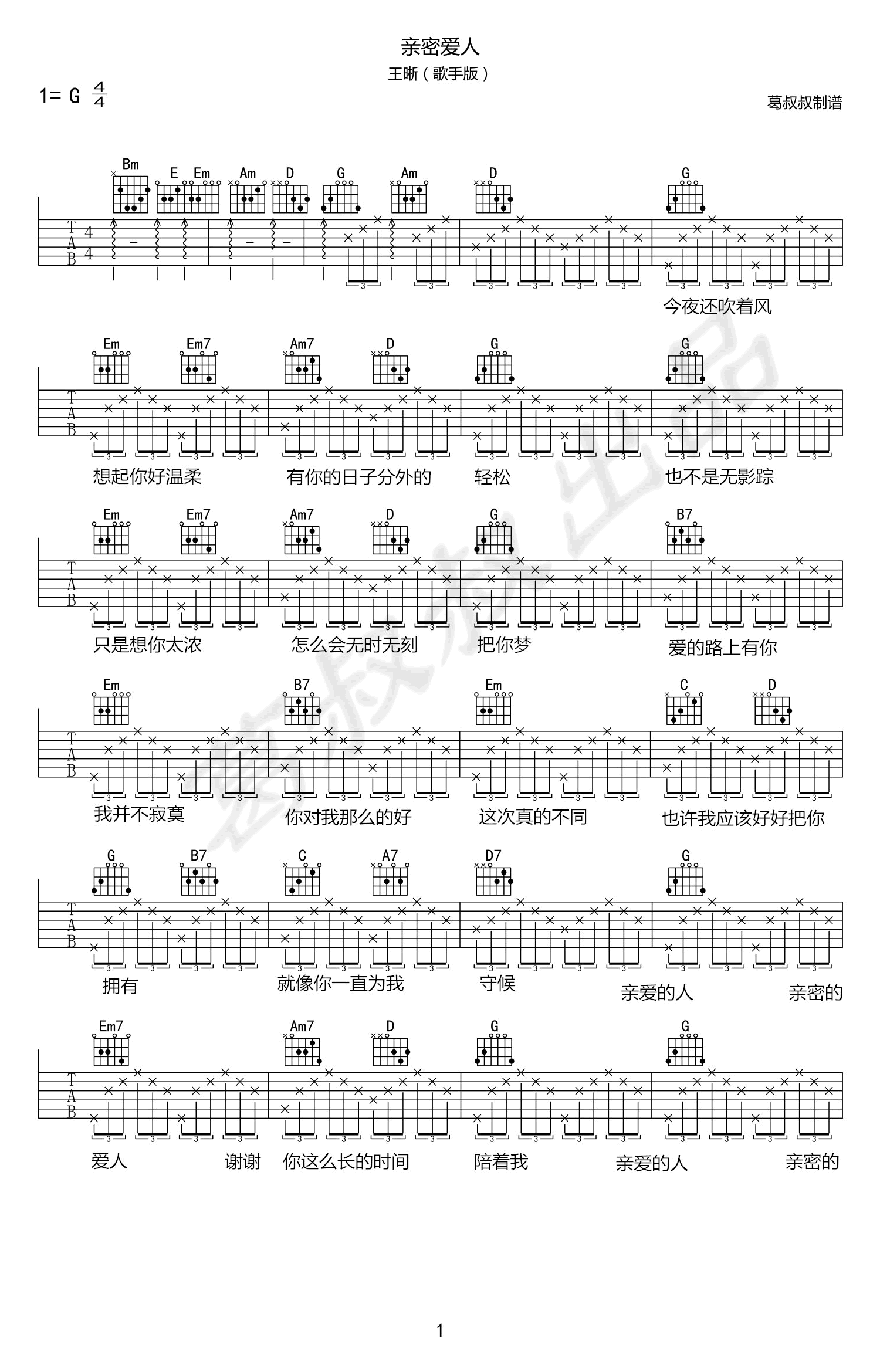 - 亲密爱人吉他谱_王晰(歌手版)_G调弹唱谱