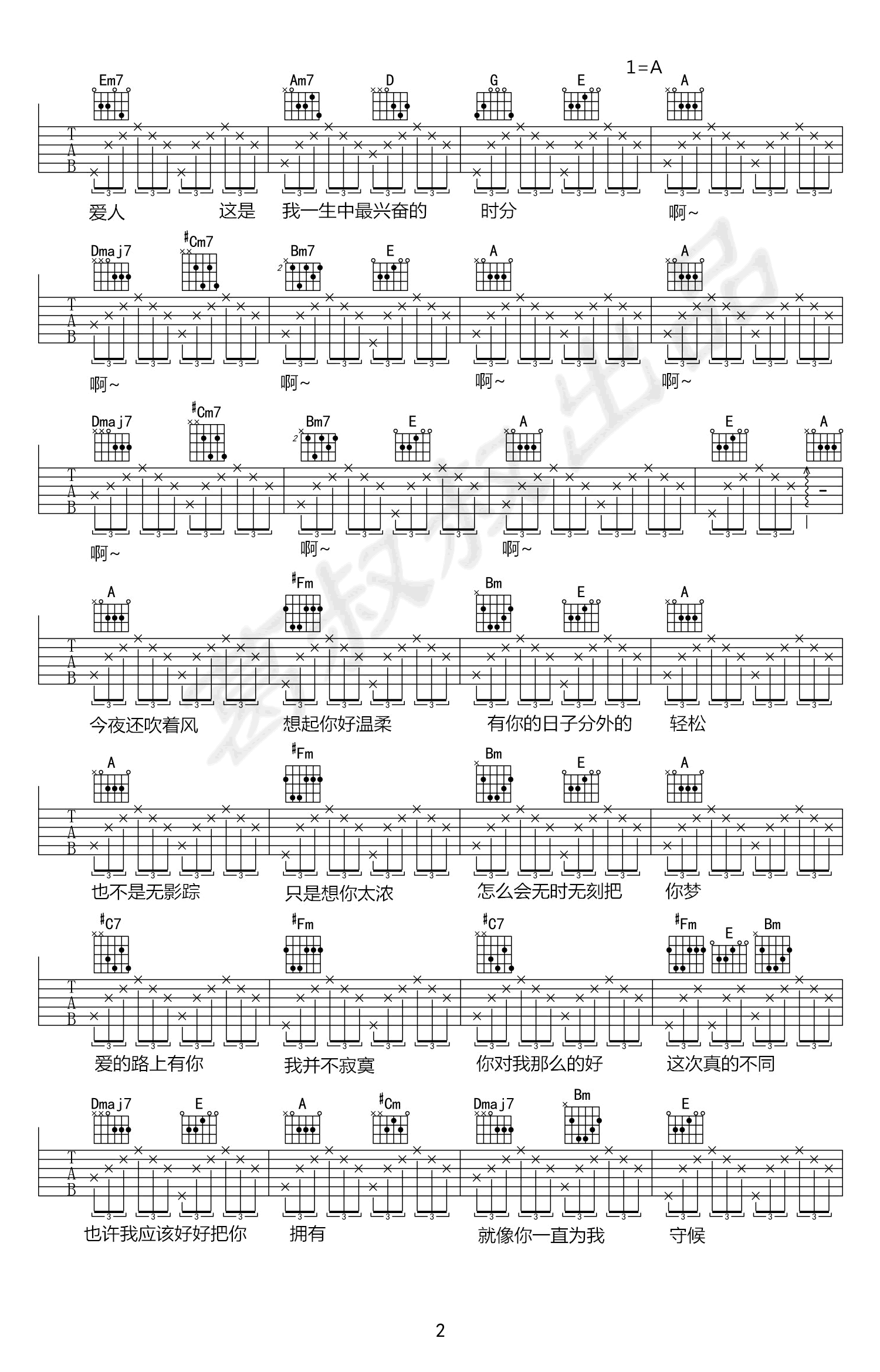 - 我是真的爱你吉他谱_李宗盛_C调_高清图片谱