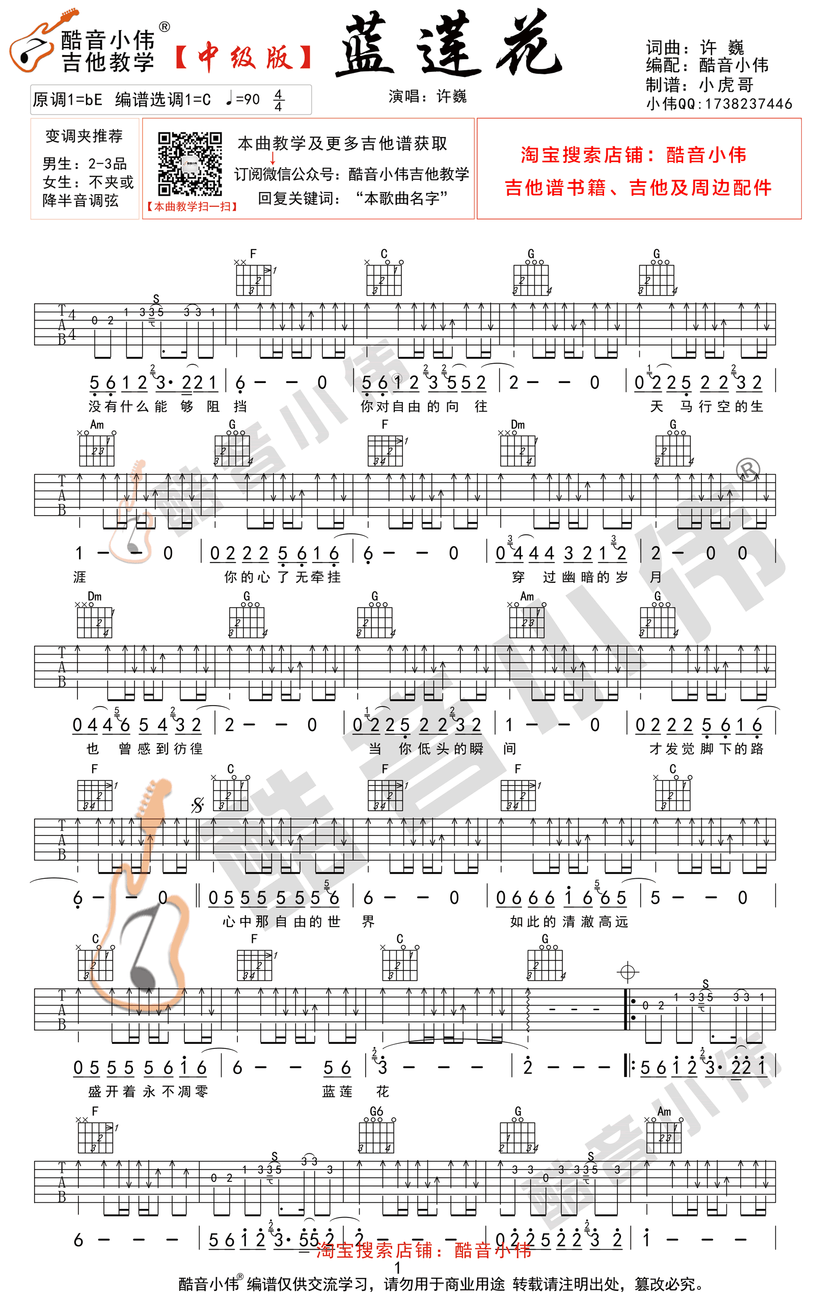 - 蓝莲花吉他谱_C调弹唱谱高清版_许巍