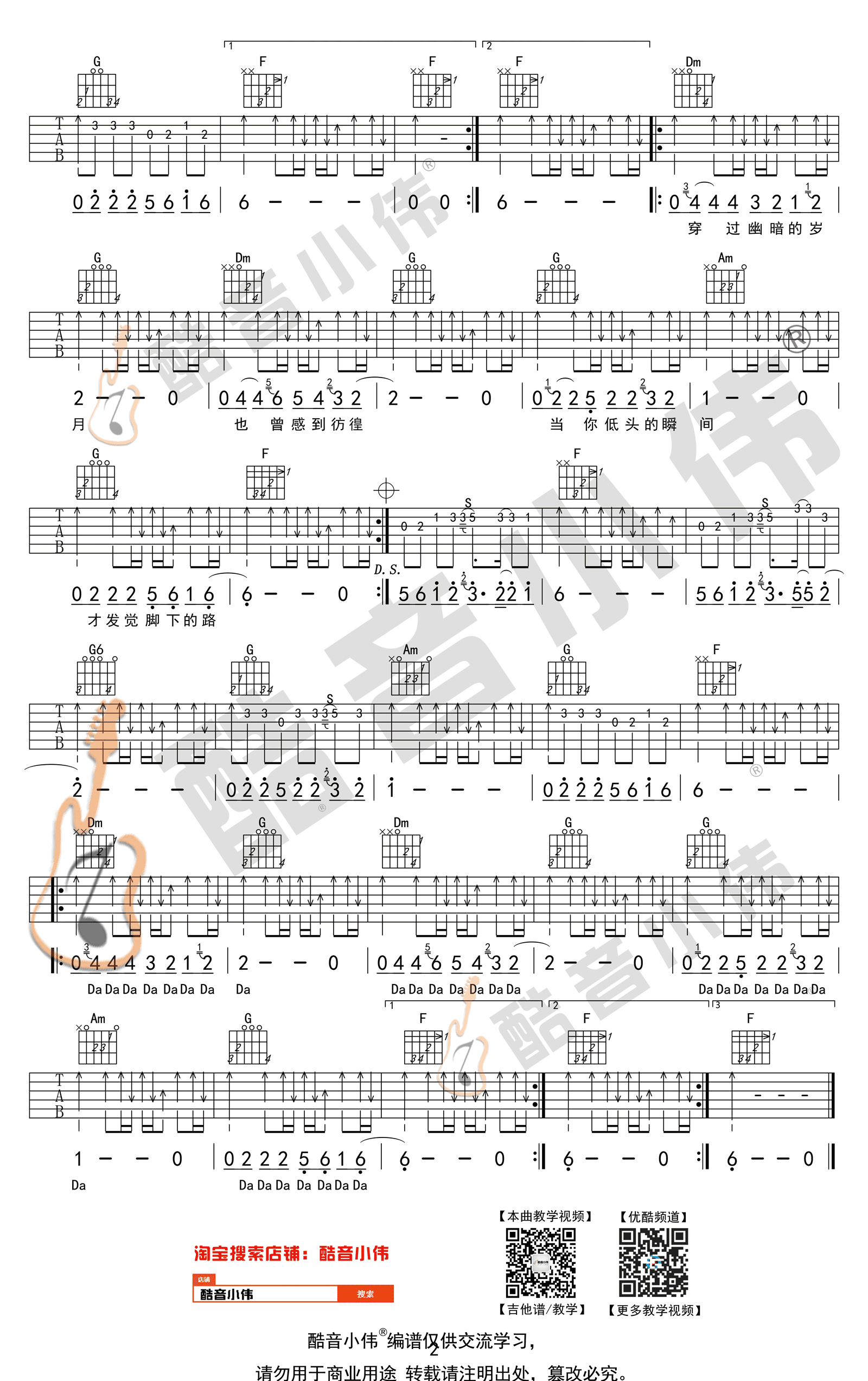 - 许巍《无尽光芒》吉他谱 F调 吉他弹唱教学视频