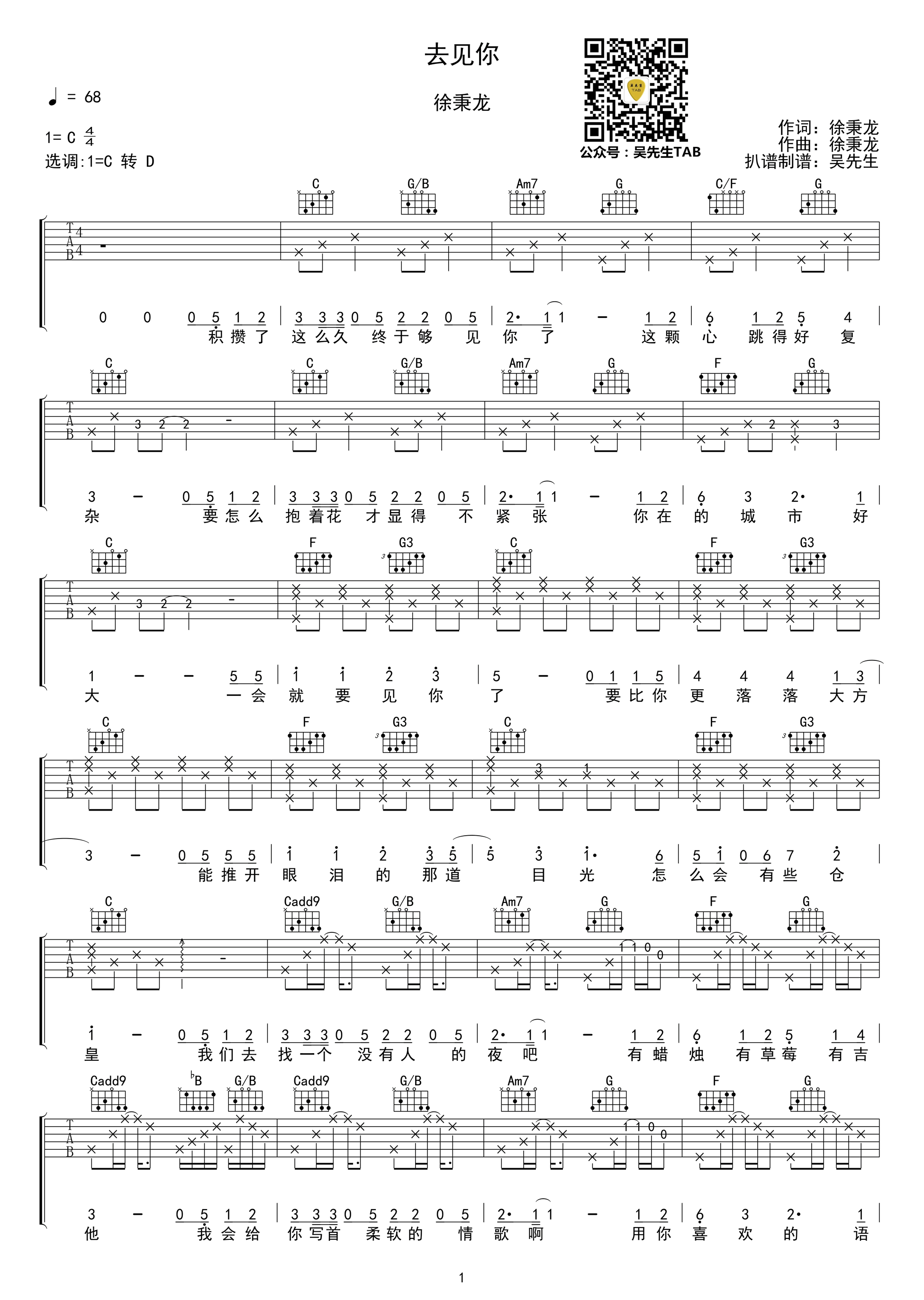 - 去见你吉他谱_徐秉龙_C调_弹唱谱高清版