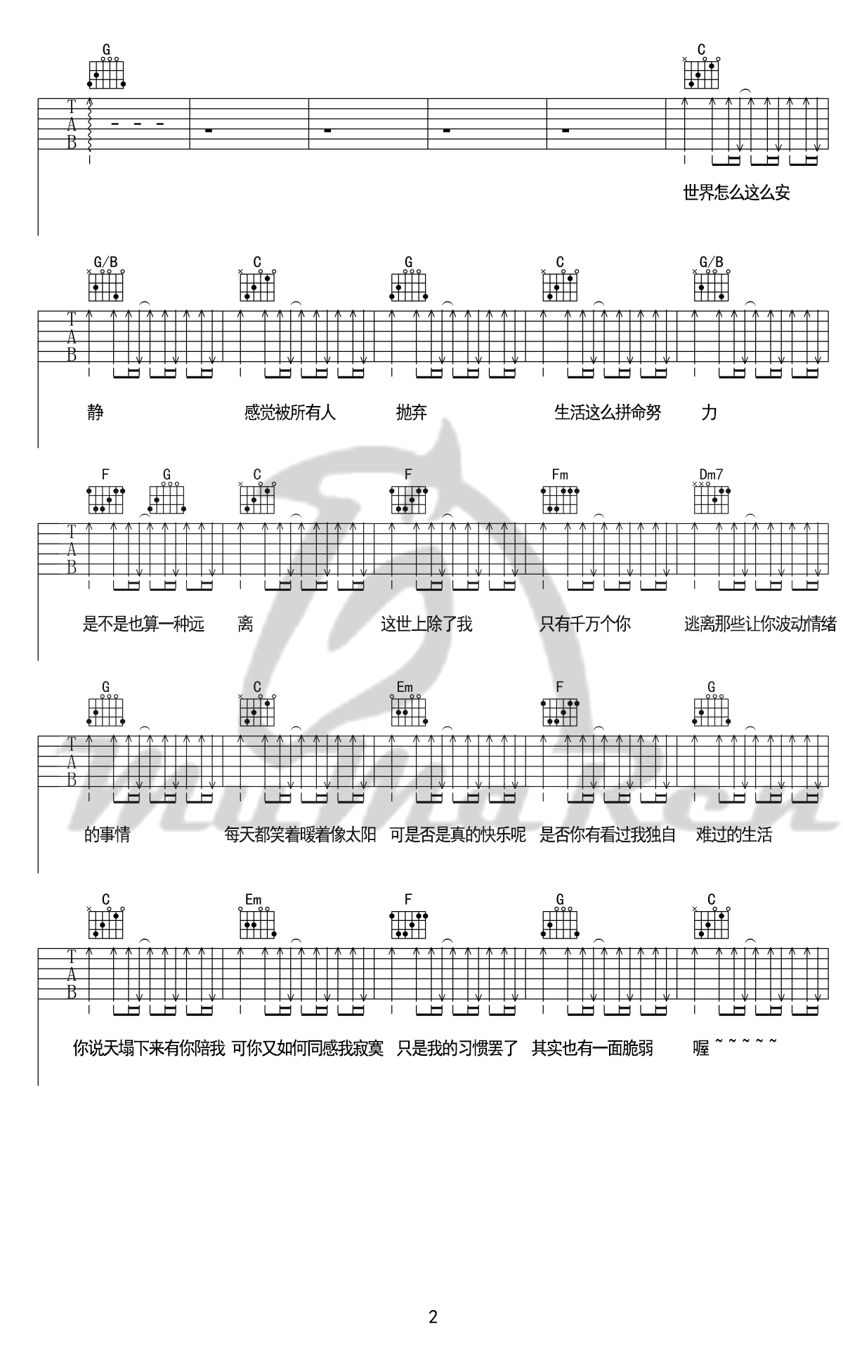 - 安静吉他谱_王俊凯_安静弹唱谱(图片谱高清版)